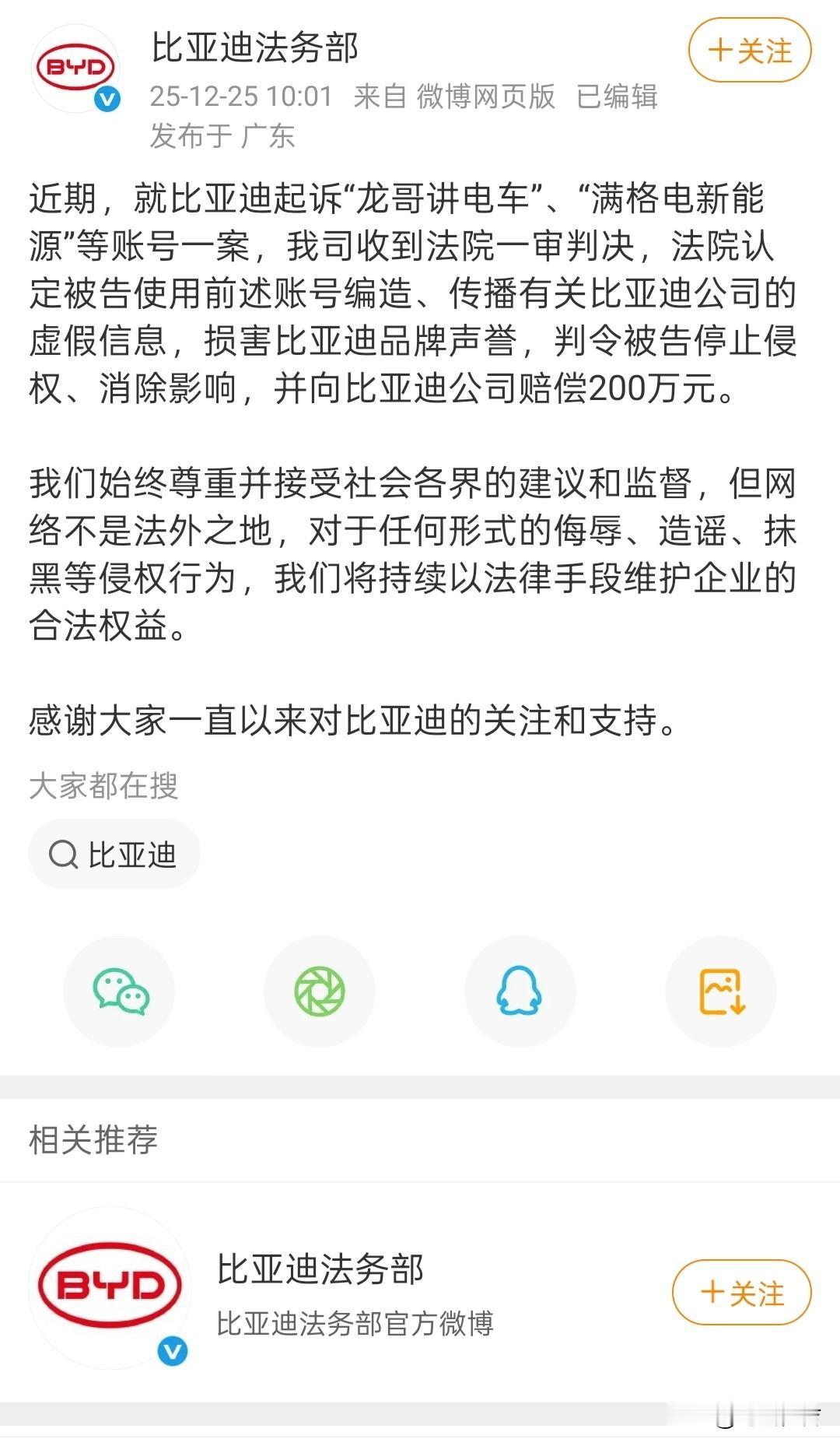抹黑就是抹黑,正义不会迟到。靠抹黑赚取流量是不可行的,法律不会冤枉一个好人,也不会放过一个坏人。我已经记不清了,这是第几个败诉的自媒体了。 自主品牌有不足,我们可以指正,建议。长期抹黑对自主品牌是伤害,大国崛起从来不是单方面都崛起。比亚迪作为新能源汽车的龙头,一年几百万的销量。你们却天天抹黑说比亚迪不好,这就是故意的。所以一旦主机厂起诉,你就会败诉,道歉加赔偿。 所以不管是说车的,还是修车的,都要客观公正的去说,不能有个人情绪在里面。或者说拿钱办事,这样不但害了自己,还误导了很多人,大家说是不是。