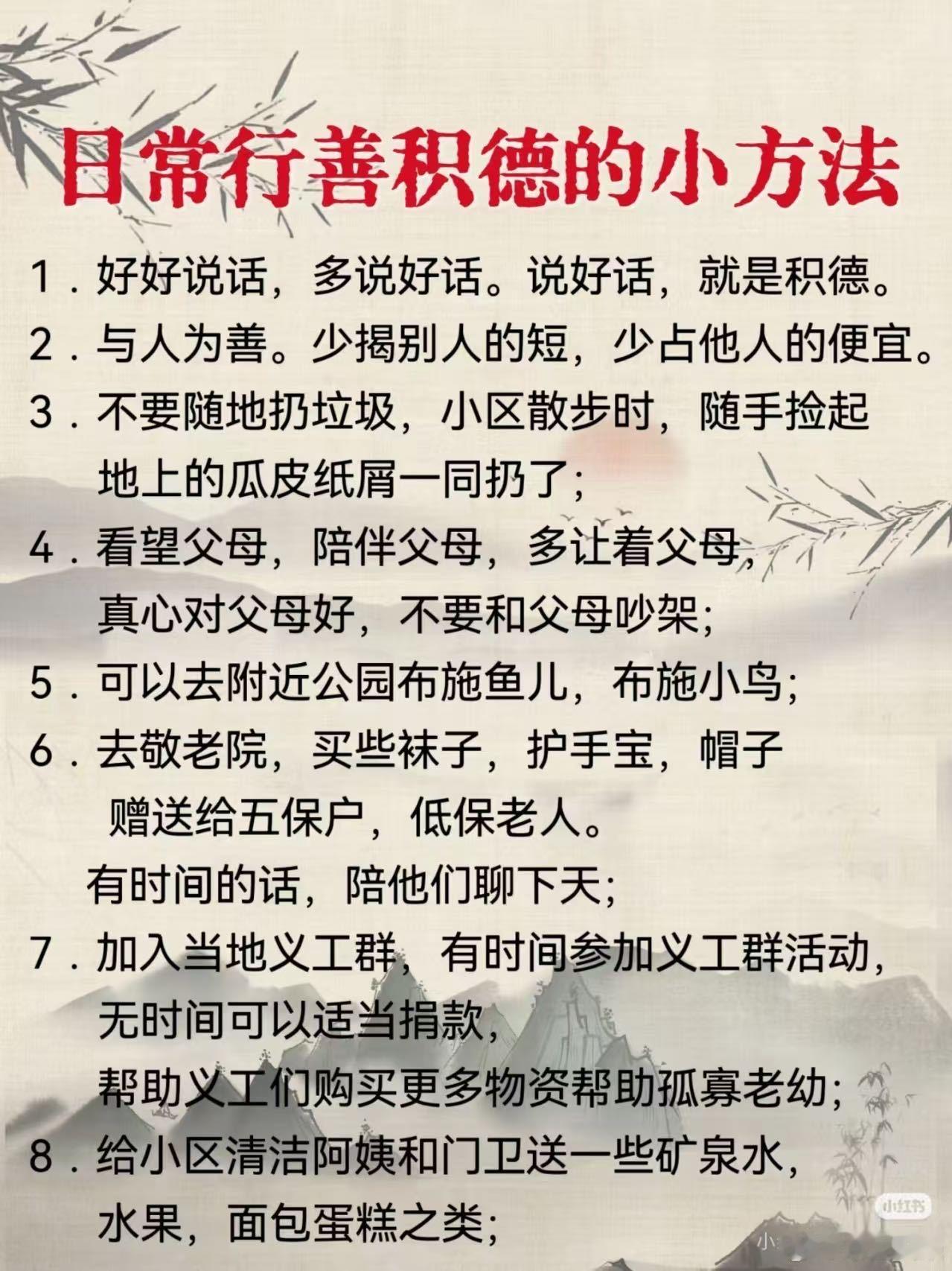 谁是你生命中真正的贵人?生活中,如果有人劝你行善、劝你孝顺父母、劝你不邪淫、劝你放生等,那么这个人就是你生命中真正的贵人!厚德载物,人生顺遂需要足够的福报才能支撑,所以当你听劝并觉醒,开始弃恶从善,改邪归正,积德行善,随着福报的不断积累与增加,你的财运、事业、工作、婚姻、健康等都有了很好的变化。贵人的真正意义是引导你走出泥潭,走向正道,改变命运!贵人相遇,难能可贵,请珍惜这样的贵人!