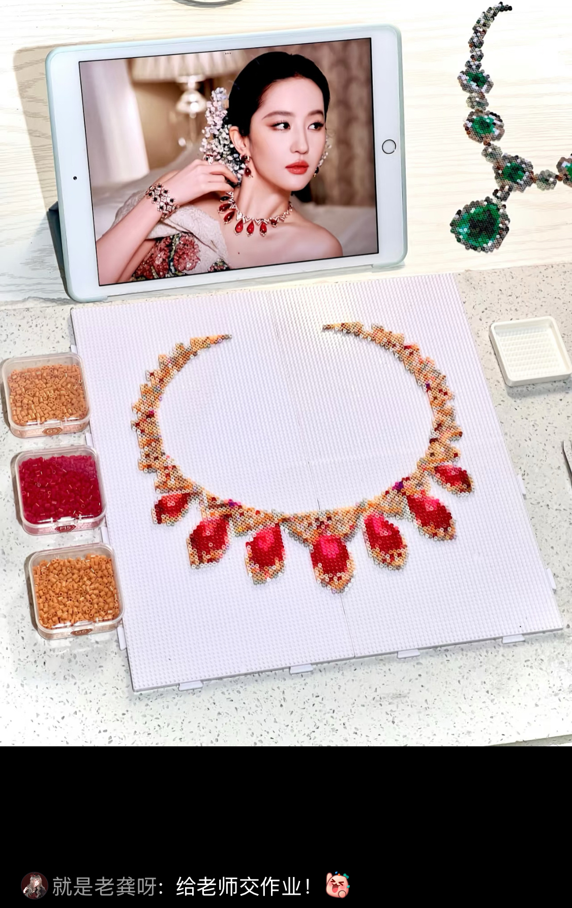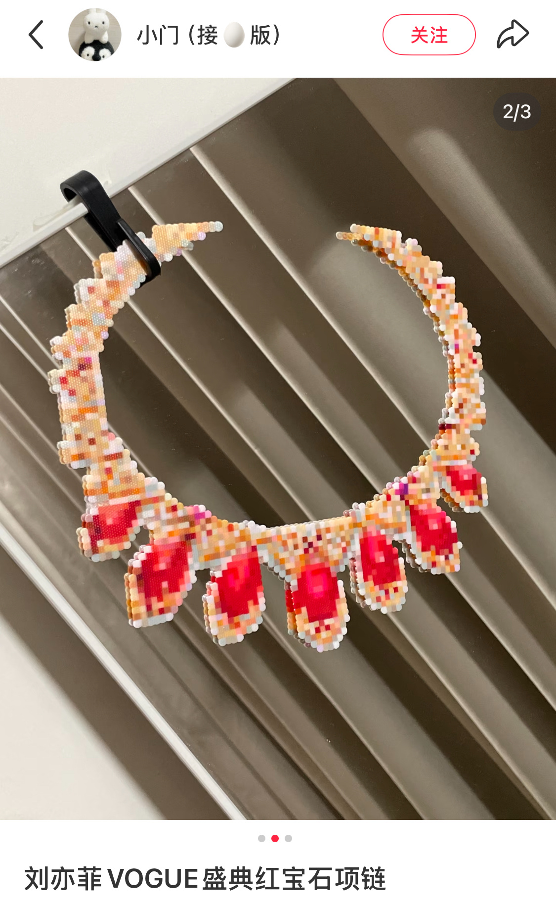也是红到拼豆界啦一眼「刘亦菲VOGUE红宝石项链」