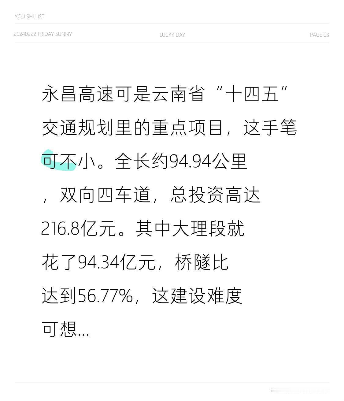 永昌高速可是云南省“十四五”交通规划里的重点项目,这手笔可不小。全长约94.94公里,双向四车道,总投资高达216.8亿元。其中大理段就花了94.34亿元,桥隧比达到56.77%,这建设难度可想而知。 它途经博南、厂街、水泄三个乡镇,还设了4处互通立交、1处服务区、3个收费站。这样的布局,方便了周边群众的出行。想象一下,以前出门可能要绕远路,现在有了高速,省时又省力。它的贯通直接惠及周边数万群众,以后无论是运输农产品,还是外出旅游,都更便捷了,未来的日子肯定越来越有盼头。大理高速公路 云南高速公路