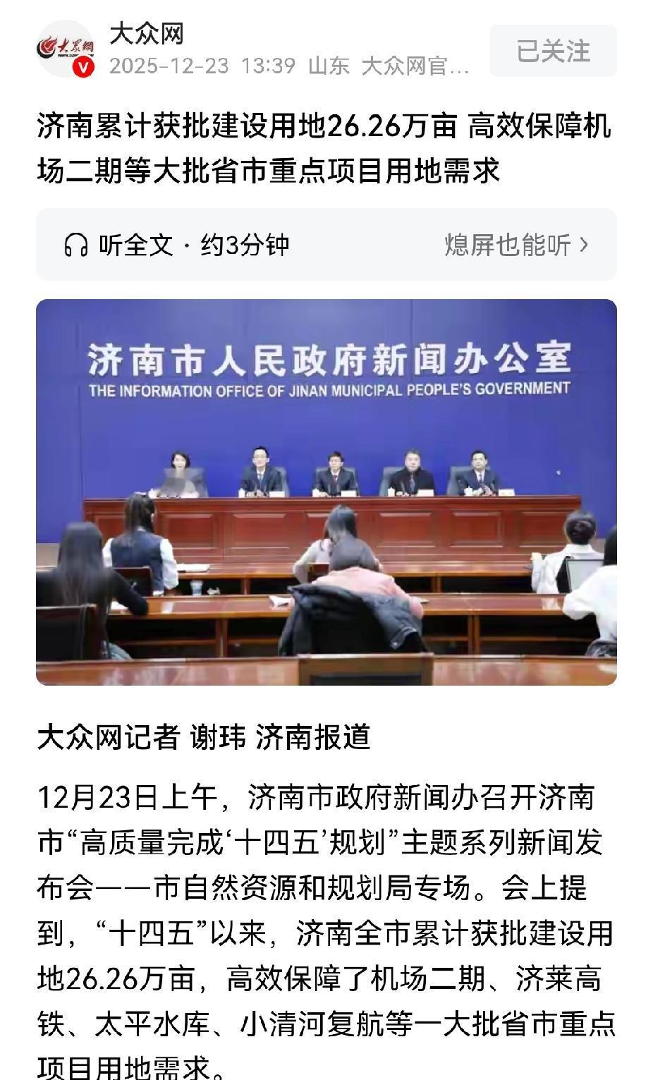 山东“强省会”的力度真不如“强龙头”,十四五期间济南获批建设用地依然不如青岛。 因为“强省会”,十四五期间济南建设用地获批猛增至26.26万亩,同期山东总批准了建设用地208.6万亩,济南占到了12.6%。 但十四五期间,青岛获得的建设用地占山东的12.8%,比济南还高一点点。 这还是济南起步区获批国家“四合一”新区,山东必须给配套用地的情况。 由此可见,“强省会”力度其实是不如“强龙头”的。网上很多青岛网友抱怨“强省会”抢了青岛机会是无稽之谈,山东对青岛的支持一点也没变少。 但就算是这样,济南已经完成了机场、火车站、地铁的翻新工程,引进了包括比亚迪在内的一批工厂,引入、新建一些高校校园,其中包括山东大学龙山校区等。 要知道十三五期间,济南建设用地只占全省的5.9%,十二五期间占5.3%,远低于全省平均水平。 一个省会的建设用地指标在全省排倒数,某些人还有脸说济南吸血。 但就是这样,济南已经完成了机场、火车站、地铁、公路、高楼、运河的建设,为将来经济爆发打下基础。这说明济南对建设用地的利用效率很高。