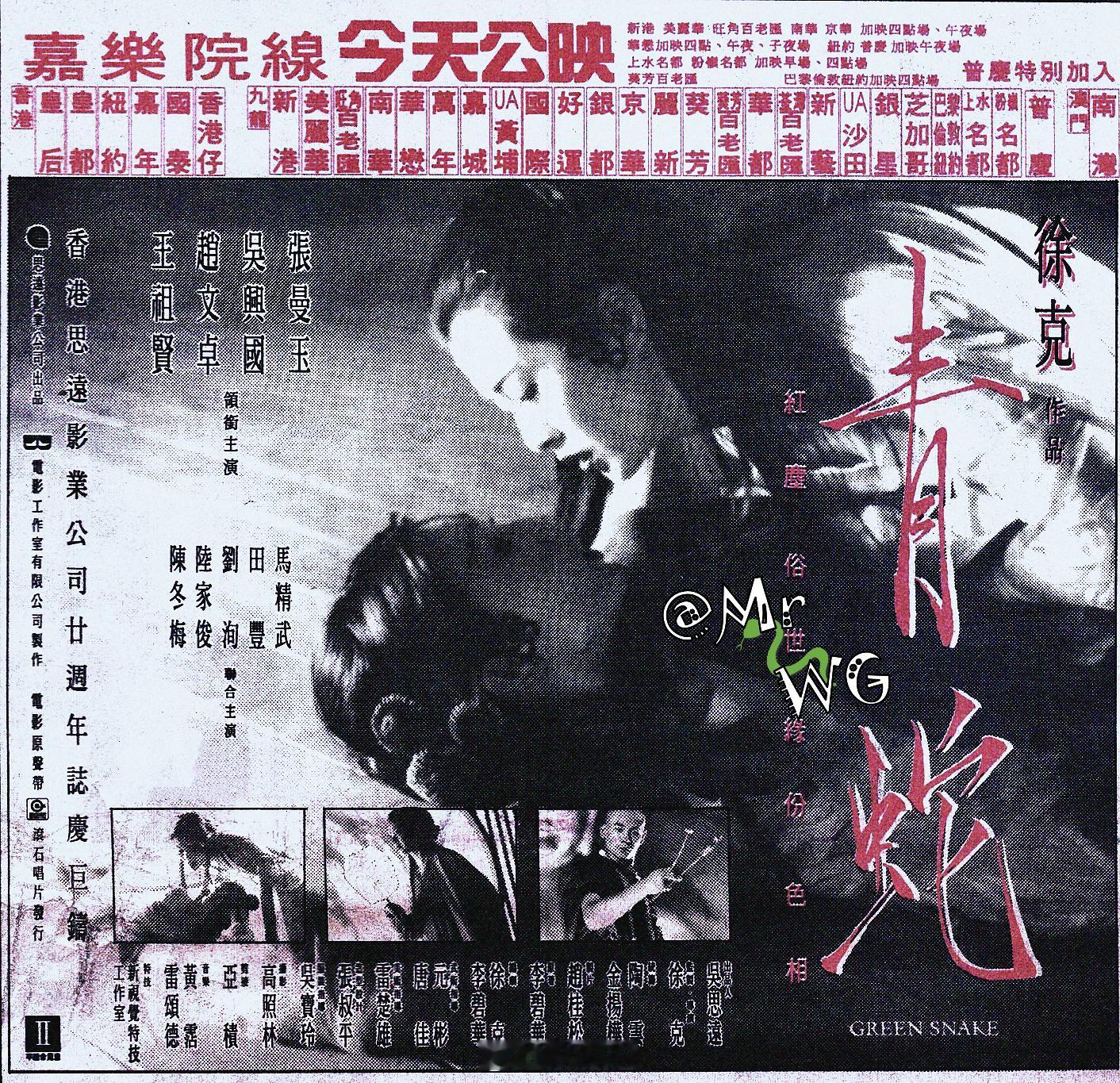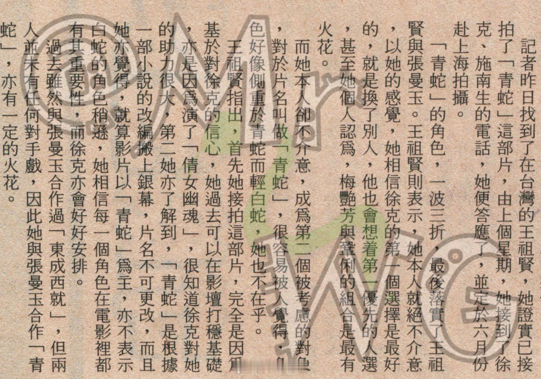 王祖贤独家扫描 不介意“执二摊”,全信徐克,于是有了王祖贤版仙妖轮替、姽婳飘袅的白素贞🐍🤍——1993年4月,又一则王祖贤 接演白蛇的报道跨年电影愿:记者致电王祖贤,向她确认✅是否接演【青蛇】的白蛇,王祖贤证实了这个传言,因她上周接到徐克导演和施南生电话,聊过之后知晓自己更适合大气柔雅的白蛇,已经答允,【青蛇】一波三折的选角终于尘埃落定。王祖贤很大方地表示,不介意她非第一人选,也不在乎片名叫“青蛇”——第一,【倩女幽魂】对她意义重大,就是徐克的戏,所以她对徐老怪,有绝对的信心;第二,她了解影片是改编李碧华小说,片名不可更改,而且以青蛇为主,并不表示白蛇稍逊,祖贤相信各个角色都有重要性,徐克会安排妥当。第三,祖贤虽然和张曼玉同演了【东成西就】(又同辞演拖期的【东邪西毒】),但并无对手戏,她觉得会和曼玉合作会有火花。王祖贤交出冰妍又很攻的白素贞,造型婉媚迷人、亦是她演技巅峰,更和张曼玉组成艳异绝版搭档,双姝为港片史留下不可磨灭的经典——给徐克那通电话点赞~P3,再一张【青蛇】93呢首映时的罕见海报;P8/9,祖贤、Maggie在港台两地宣传本片。