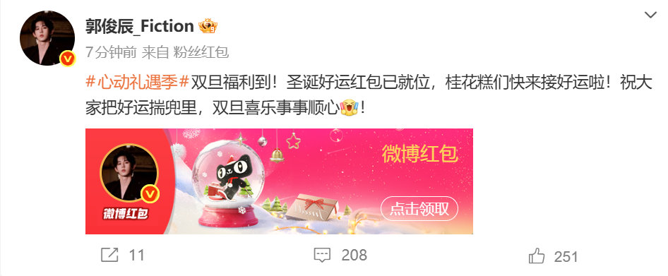 明星集体发红包是过节吗你担喊你抢红包啦 郭俊辰带着清爽元气派送红包,宣璐以温润气
