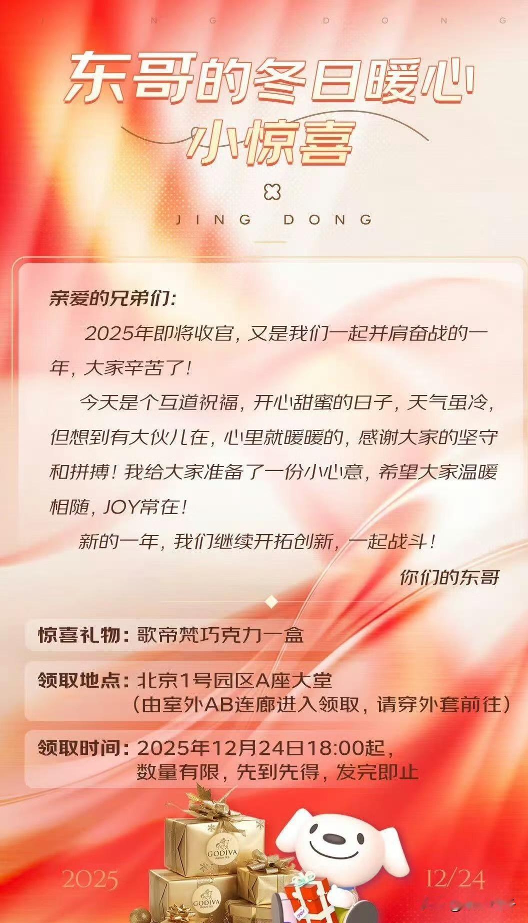 刘强东发年终奖,最高25薪上不封顶[赞] 不愧是东哥太豪气,又给员工涨工资,又发丰厚年终奖,这谁不羡慕呀!希望这些良心企业多多益善,让老百姓真真切切的享受到福利。 12月25日,据媒体报道,京东发布了2025年年终奖发放方案,全集团超92%的员工能拿满年终奖,甚至有大部分还能超额多拿。奖金这一块同比去年增长了70%,有望成为行业里最大涨幅的企业。 据说绩效顶尖的员工全年最高可获24薪,相当于多拿一年工资呀,还有采购和销售业绩突出的员工能拿到25薪,上不封顶! 京东的觉悟不是一般的高,这就是在响应坚持投资于物和投资于人紧密结合,不仅社保和五险一金带头上。 这一轮涨薪也率先跟上了,这才是真正的良心企业呀!取之于民,用之于民,把利益最大化的分到基层员工头上,为京东点赞,为东哥点赞!👍刘强东 刘强东工资 京东工资待遇 京东利润