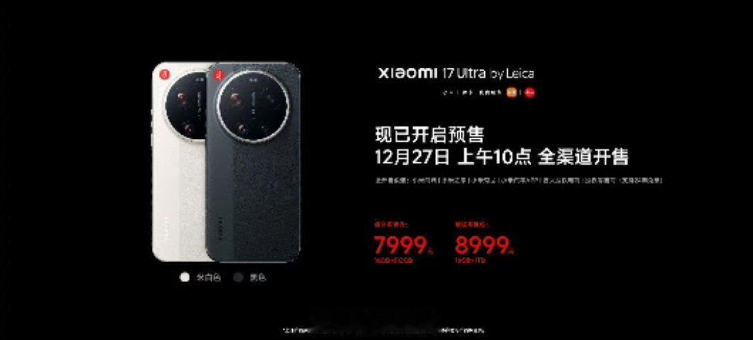 小米17Ultra小米17 Ultra发布,只要6999元,大家快冲标准版:12GB+512G——6999元16GB+512G——7499元16GB+1TB——8499元 徕卡版:16GB+512G——7999元16GB+1T——8999元 小米17ultra