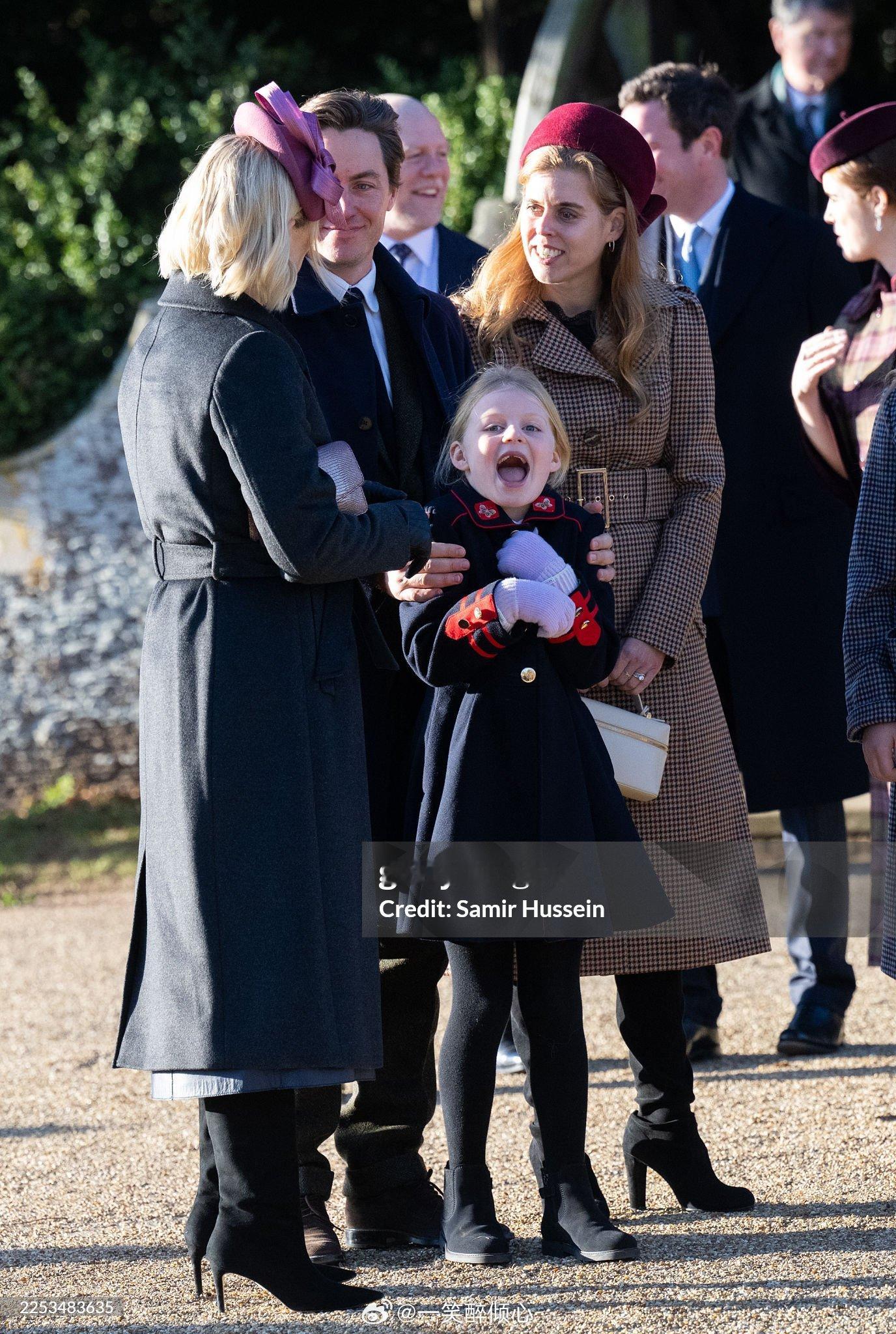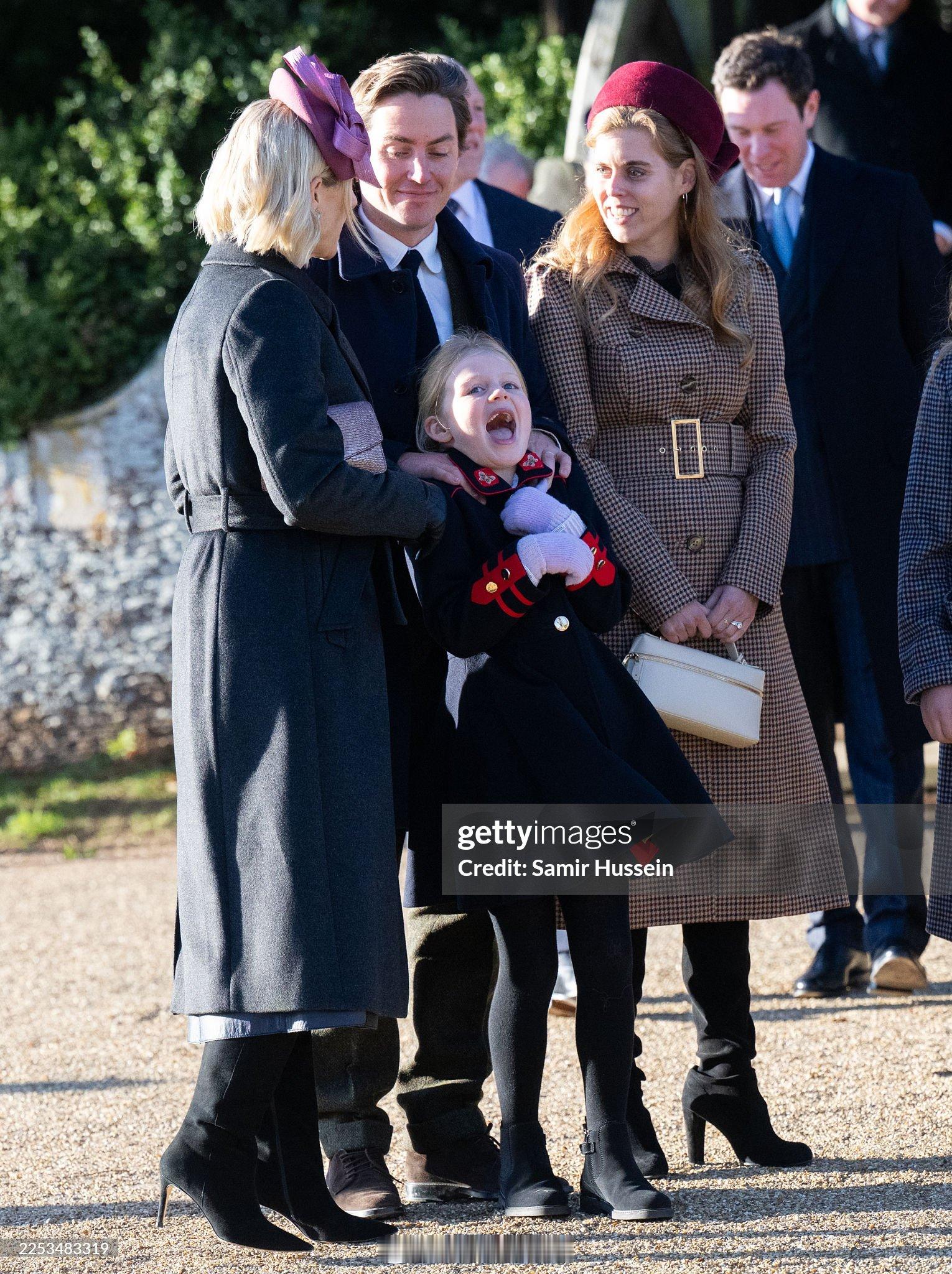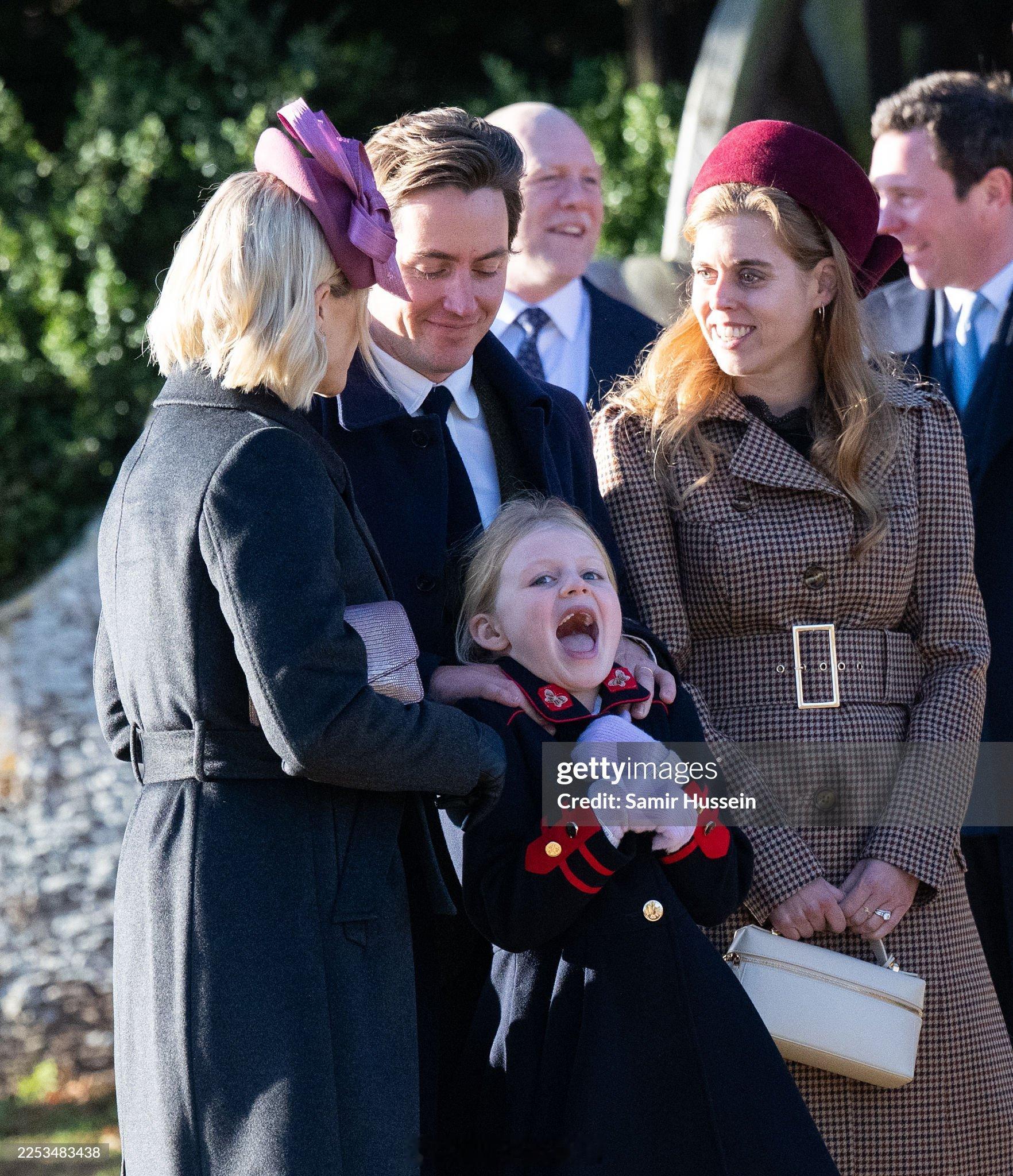 英国王室 比阿特丽斯公主和她的丈夫Edoardo Mapelli Mozzi与表姐扎拉廷德尔交谈,以及和表外甥女Lena Tindall互动