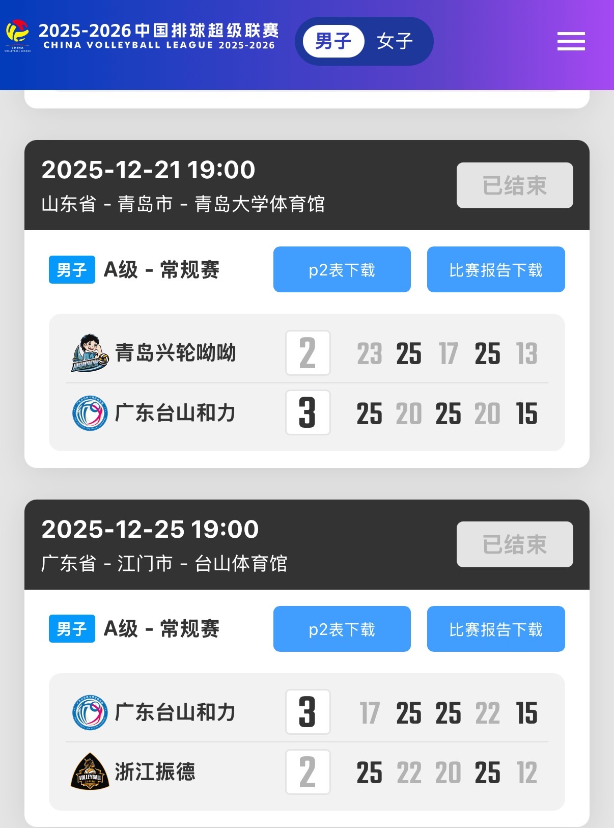【广东时间】前四轮比赛,广东男排经历的三场五局大战都获得胜利✌🏻看到有球迷评论区说第五局时间从海河流到了珠江第一轮:广东3-2河北第二轮:广东3-1天津第三轮:广东3-2山东第四轮:广东3-2浙江2025-2026中国男排超级联赛