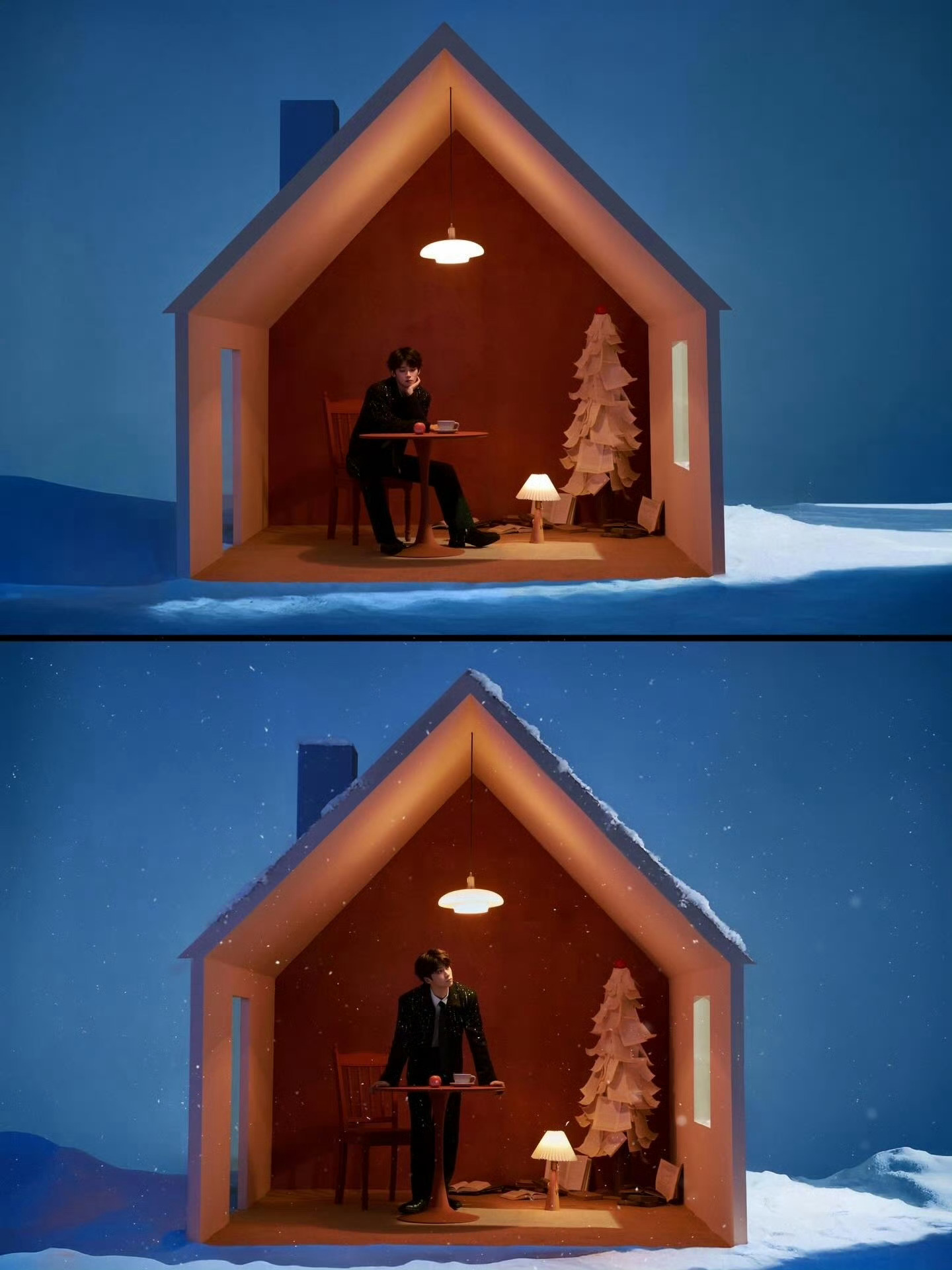 梓渝 圣诞造型图集,细闪珠片装饰的套装,冬夜温暖小屋的氛围,小王子的岁末浪漫时光。🎄🍎❄️