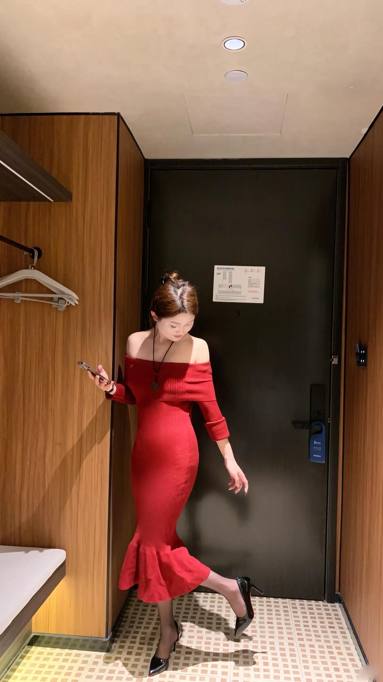 红裙是都市夜晚最鲜活的色彩,抹胸剪裁勾勒出利落的身形线条,在昏黑的街道上,一步一