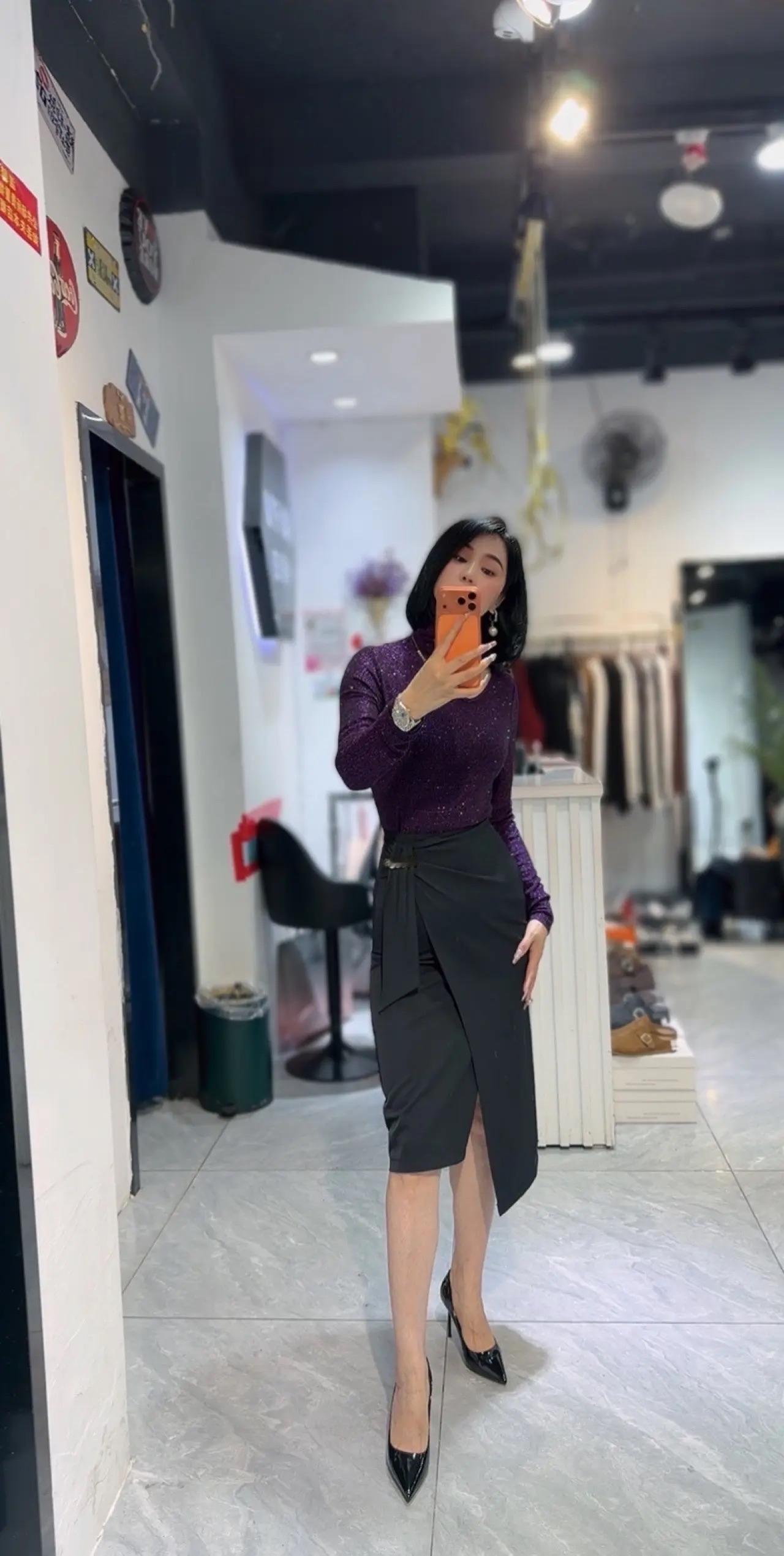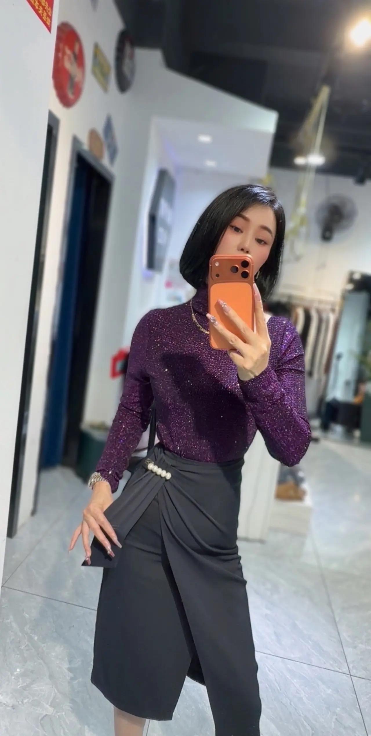 优雅穿搭指南:紫色上衣+黑色半身裙,尽显都市女性魅力!
