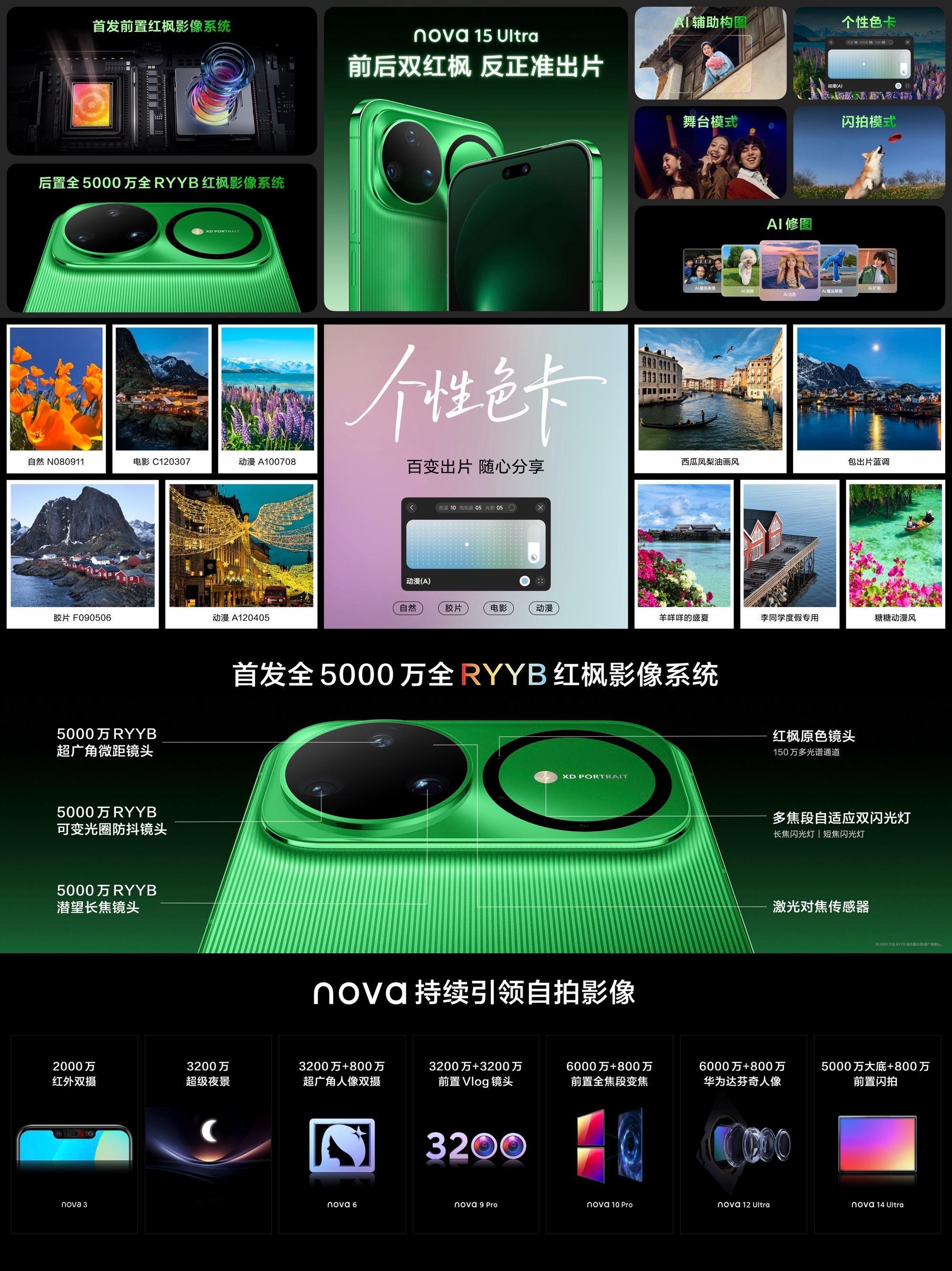 nova15系列开售人人我人人 超级nova开售!nova 15系列12月25日10:08开抢,2699元起配置拉满,还能薅超多福利,错过血亏!标准版2699起、Pro版3499起、Ultra版4199起,加量不加价堪称中端机良心之作,麒麟 9系芯片、前后双红枫影像、6500mAh大电池+100W超级快充Turbo,核心配置无短板。重点说福利:购机即享800元新机权益礼包,这还是最后一款有鸿蒙日日新签到红包的机型,大额羊毛薅到就是赚到!12月31日前购机,还限时赠送最高249元一年期HUAWEI Care+,用机更安心、售后更省心。配置香、价格香、福利更香,耀目双星设计加上金属中框颜值在线,系统上搭载鸿蒙6,还首发AI沾色,能够一键沾取你喜欢的照片风格,体验拉满,同价位找不到对手,这波必须冲!华为nova15系列正式开售