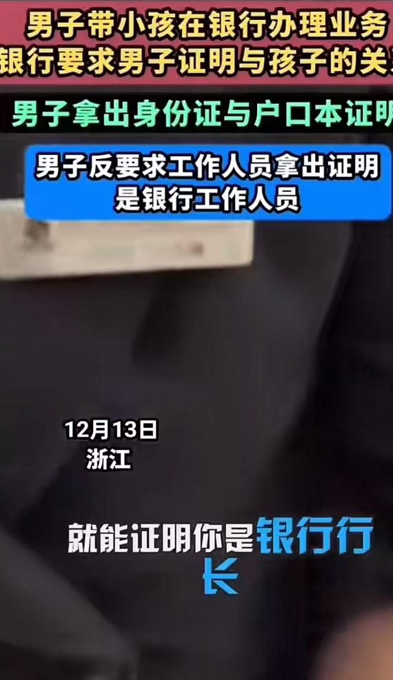 “终于有硬茬来治银行了。” 男子带小孩去银行取育儿补贴,柜员要求男子证明与孩子的关系,说户口本照片不行,必须要原件!男子回家拿了户口本,回来要求柜员拿出合同和身份证证明自己是银行的员工!男子:你刁难我,我也刁难你! 事情发生在一家银行网点,一位父亲带着孩子去取育儿补贴,本来是挺简单的事儿,没成想硬是被柜员给折腾出了一场“大戏”,轮到这位父亲办业务时,柜员张口就要求他证明和孩子的父子关系,父亲早有准备,掏出手机亮出了户口本的照片,想着现在都电子化了,照片应该也能算数,可没料到柜员头一摇,语气还挺硬:“不行,必须要户口本原件,照片不算数。” 这话一出父亲心里肯定窝火,但想着赶紧把补贴取了,也没多说什么只能硬生生顶着可能的烈日,转身回家去拿户口本原件,来来回回跑了一趟腿,耽误了不少时间,等他再次坐回银行柜台前时,没有急着递上原件办业务,反而先冷静地掏出手机报了警,这一举动把周围办业务的人都惊到了,柜台里的柜员也一脸懵,不知道这位父亲要干嘛。 报警之后这位父亲才缓缓开口,抛出了一个让整个银行大厅瞬间安静下来的要求:“想给我办业务可以,你先证明你是这家银行的员工。” 这话直接把柜员问住了愣了好半天,下意识地指了指自己胸前挂着的工牌,意思很明显这工牌不就是证明吗? 可面对工牌父亲根本不买账,语气平静却带着不容置疑的强硬:“你刚才说户口本照片不能证明关系,非要原件,现在你这塑料工牌,谁都能仿做,凭什么就能证明你是银行员工?要证明也行,拿你的劳动合同原件来,必须是盖着银行公章的那种,照片同样不算数。” 明眼人都听出来了,这就是妥妥的“你刁难我,我也刁难你”,把柜员刚才对待他的那套逻辑,原封不动地还了回去。 这一下刚才还态度傲慢的柜员彻底慌了神,估计肠子都悔青了,之前他那副轻飘飘甩下“必须原件”的模样,还有可能前一秒说照片可行、后一秒又改口的随意,现在全成了打自己脸的证据。 父亲的逻辑链条严丝合缝,连国家法定的户口本照片你们都不认,一个银行自己做的工牌凭什么让人信服?甚至合理怀疑他是冒牌货,这要求听着苛刻,却全是顺着银行的规矩来的,根本挑不出毛病。 动静越闹越大银行里戴着行长胸牌的人赶紧过来救场,本以为亮出行长的身份,就能压下这事儿,结果刚一开口就撞上了枪口。父亲瞥了眼他的胸牌,不慌不忙地反问:“你挂个牌子就是行长了?那我之前给你们看户口本照片的时候,你们怎么不承认那能证明关系呢?” 一句话把行长噎得哑口无言,站在原地半天说不出话来,场面一度十分尴尬。 其实这位父亲的反击,戳中了太多被银行繁琐流程折腾过的人的心声,生活里类似的事儿真不少,就像有网友说,去取离世父亲的丧葬费,手里明明攥着户口本,柜员却非要让去公证处开证明,证明“这钱是去世的爹给你的”,这要求离谱得像地狱笑话,活人差点被逼疯,要是逝者泉下有知,恐怕都得气活过来。 还有家长给孩子办卡,拿着出生证明去被拒,非要去村里开额外的证明,好不容易把证明开来了,隔两天再去又说不用看了,这种忽松忽紧的审核标准,谁遇上不迷糊? 更有人被来回折腾两次都没办成,第三次索性把家底全搬去了银行,身份证、银行卡、流水账、营业执照,连结婚证都带上了,就做好了“不好惹”的准备,结果那股硬气的气场一摆出来,大堂经理立马过来当和事老,业务分分钟就办妥了。 原来在这种畸形的服务生态里,你越客气越容易被当成软柿子捏,反而你硬气起来,对方才肯好好办事,而这位取育儿补贴的父亲,之所以让人觉得大快人心,就是因为他没吵没闹,只用银行对待他的那套严苛逻辑,像照镜子一样折射回去,用近乎行为艺术的方式,逼着庞大的银行机构低头。 最终这场对峙没以父亲的退让结束。面对这位父亲教科书级别的“反向背调”,之前还不可一世的银行网点只能乖乖认栽,赶紧想办法从总行那边,把涉事柜员的劳动合同原件调了过来,这不仅仅是调一份合同那么简单,更像是银行服务姿态的被迫降级。 看着银行工作人员忙前忙后地去“证明我是我”,或许他们才能真正体会到,这位父亲之前因为一张照片被拒,顶着烈日奔波回家取户口本时的委屈和无奈,本来银行柜台是为人民服务的地方,结果有些柜员却摆着“柜台里的神”的架子,把规定当成折腾人的工具。