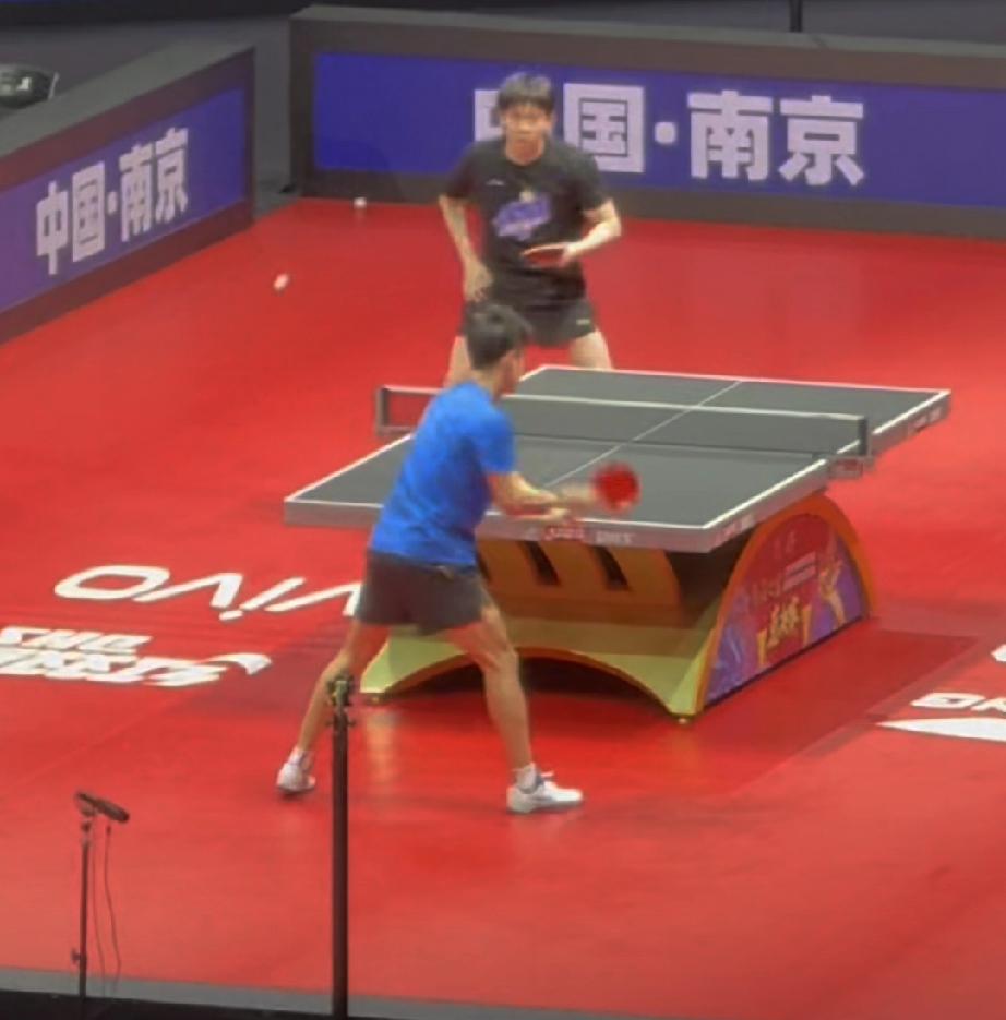 王楚钦今日才从北京飞到南京准备参加乒超总决赛。下午就出现在总决赛比赛场馆,与队友一起进行适应性训练。 王楚钦和周启豪对练。从王楚钦的训练专注和卖力看,之前WTT香港年终总决赛受的伤,现在应该好了很多。 正年轻,之前的伤也是疲劳累积所致,有了足够休息时间就好得快!