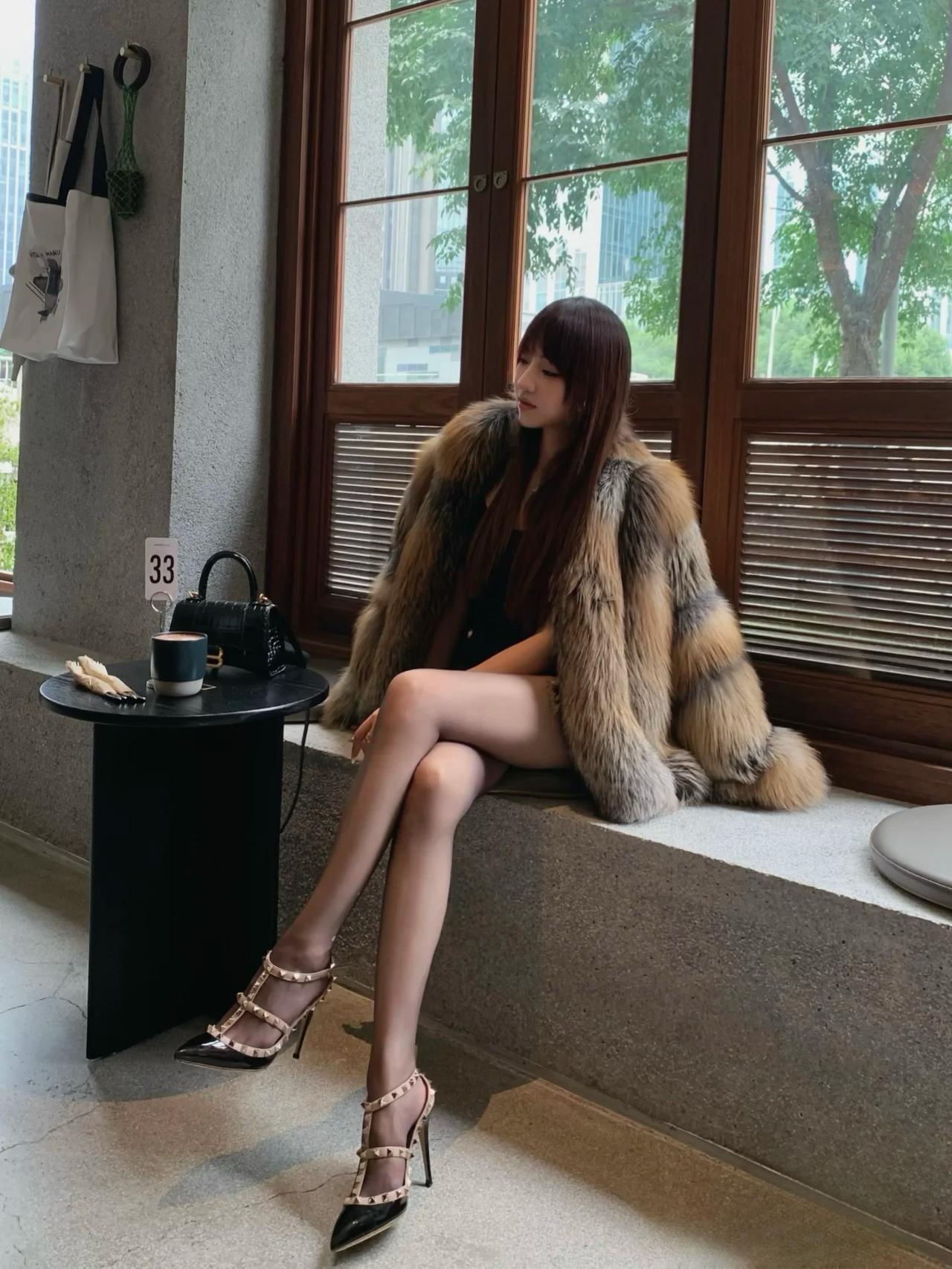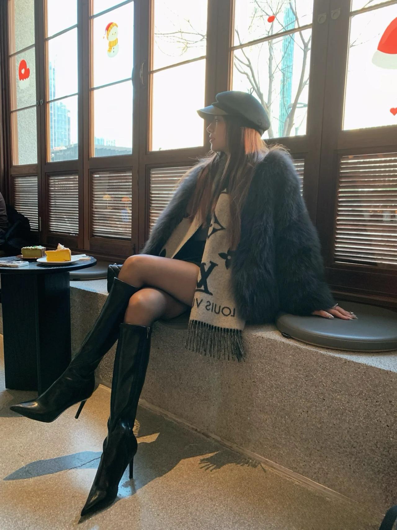 孙允珠穿黑色毛衣和短裙,再配上高跟鞋,那造型简直绝了。就说她穿黑色针织衫搭灰色西