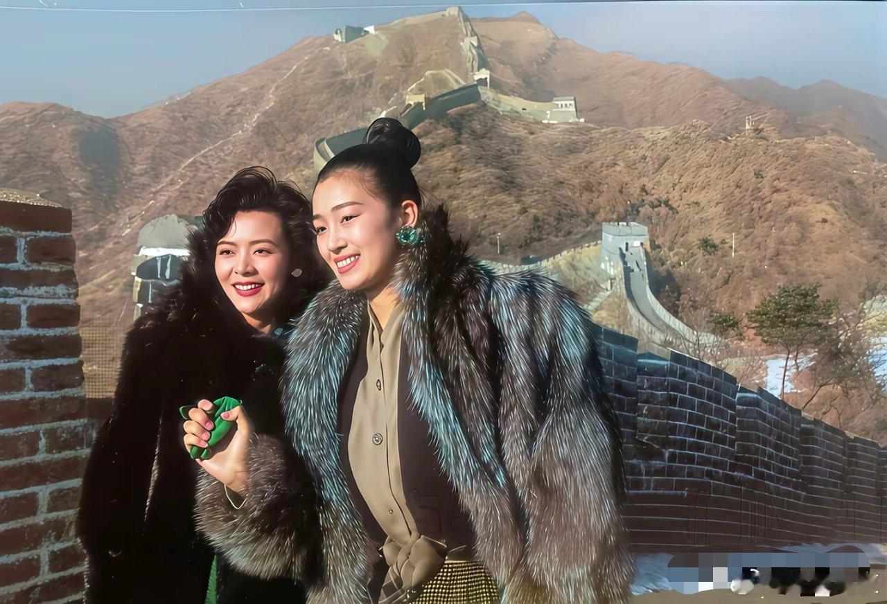1989年底,陈玉莲到北京探班巩俐,两人之前并无合作,但她俩却有一个特别的缘分。她们先后被选中饰演《大红灯笼高高挂》里的四姨太颂莲。这次见面也是为了交流心得、探讨角色。陈玉莲到北京的时候,巩俐正在拍《古今大战秦俑情》,两人就顺便爬了长城,拍下这组照片。陈玉莲港风大波浪搭配黑色大衣,整个人光彩照人。巩俐一件简单的军大衣裹身上,虽然朴素但气质不俗。那时的陈玉莲还那么美 ,巩俐还那么青春。岁月啊,真让人感慨。