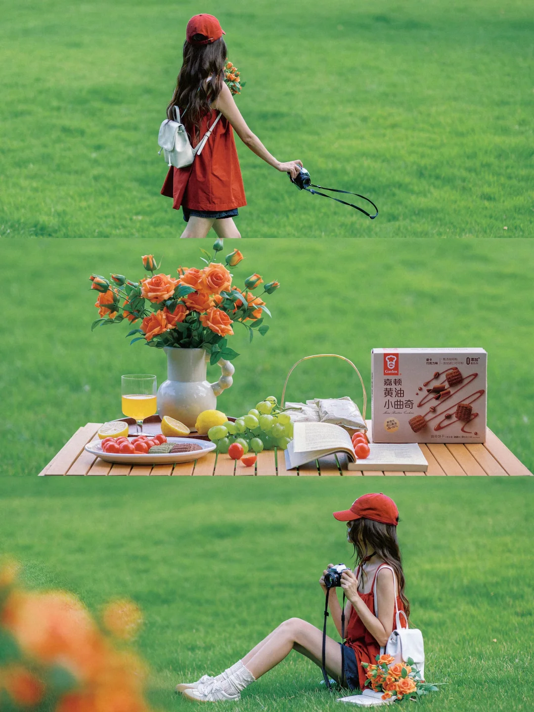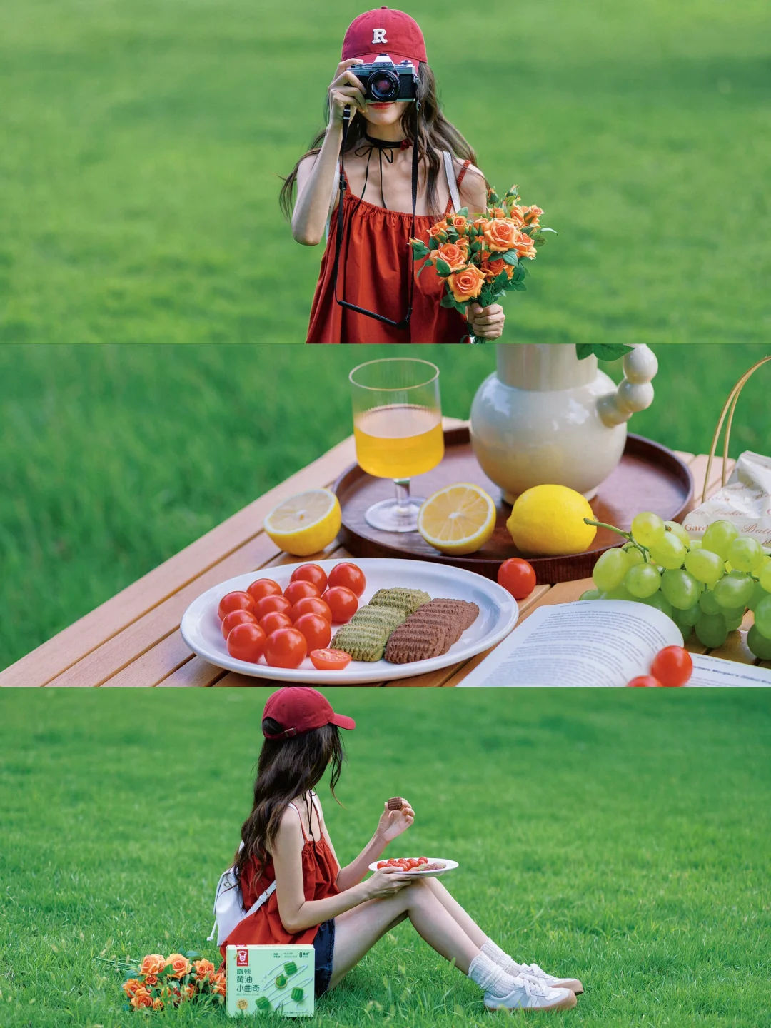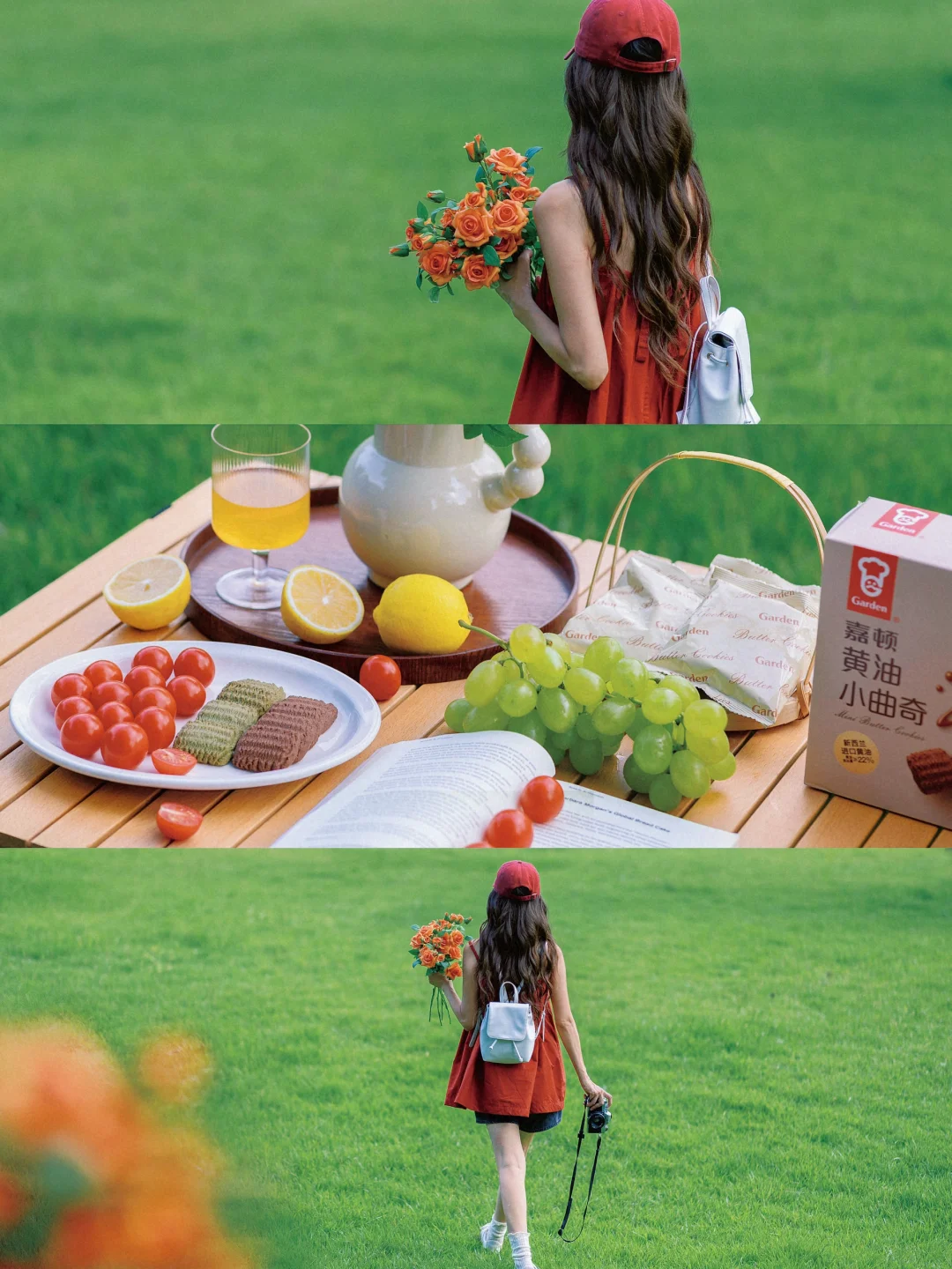 今天野餐拍照带了水果、花花增加氛围感,还带了zui近敲爱的小曲奇,让野餐时光更加惬意美好!