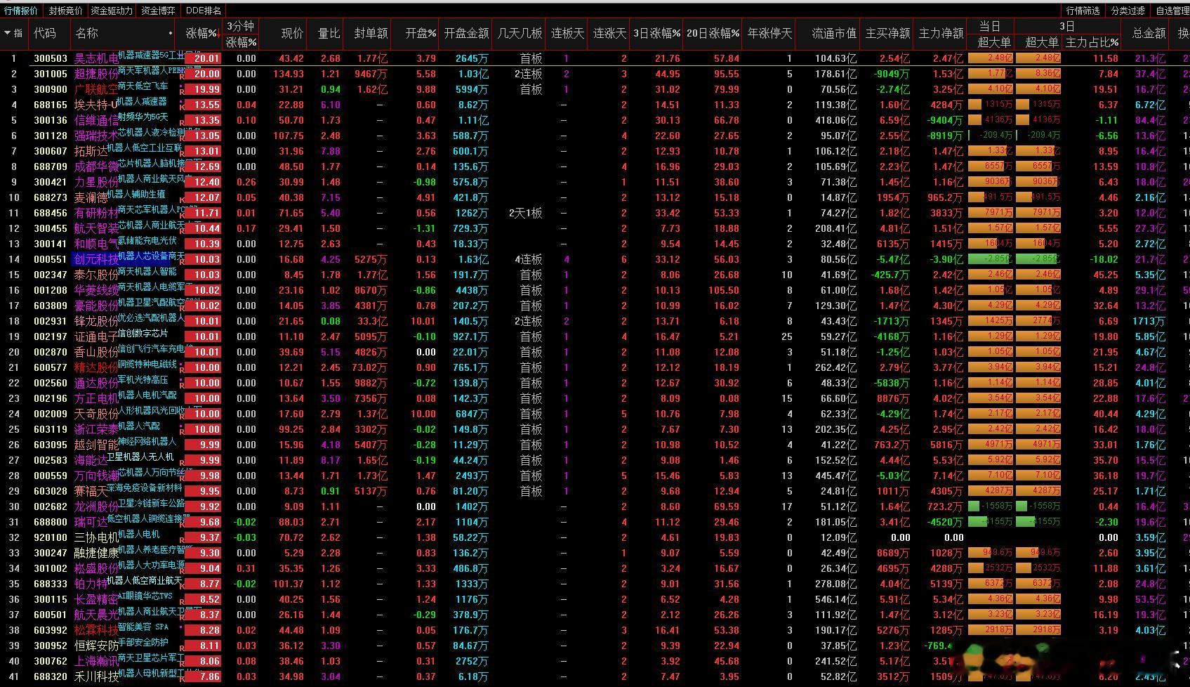 a股机器人 机器人概念股震荡走强,昊志机电、龙溪股份、锋龙股份、浙江荣泰、万向钱潮等个股涨停,长盈精密、三花智控、东方精工、五洲新春等个股涨幅居前。消息面上,锋龙股份晚上公告,控股股东拟变更为全球人形机器人上市第一股优必选。此次并购将产生显著的协同效应。优必选可借助浙江锋龙的生产平台,加速人形机器人的量产进程,并拓展汽车零部件等下游应用场景,从而在商业化落地道路上迈出关键步伐。民生证券研报指出特斯拉量产进程与技术路线迭代仍是核心主线,同时宇树科技等国产机器人主机厂即将密集进入IPO阶段,有望成为全新强催化。此外,机器人概念股此前大多经历较大幅度的整理,在各大科技成长赛道中仍属相对后排方向,故当热点轮动过程中,商业航天、AI产业链等在高位震荡修正时,机器人板块或仍存一定补涨预期。