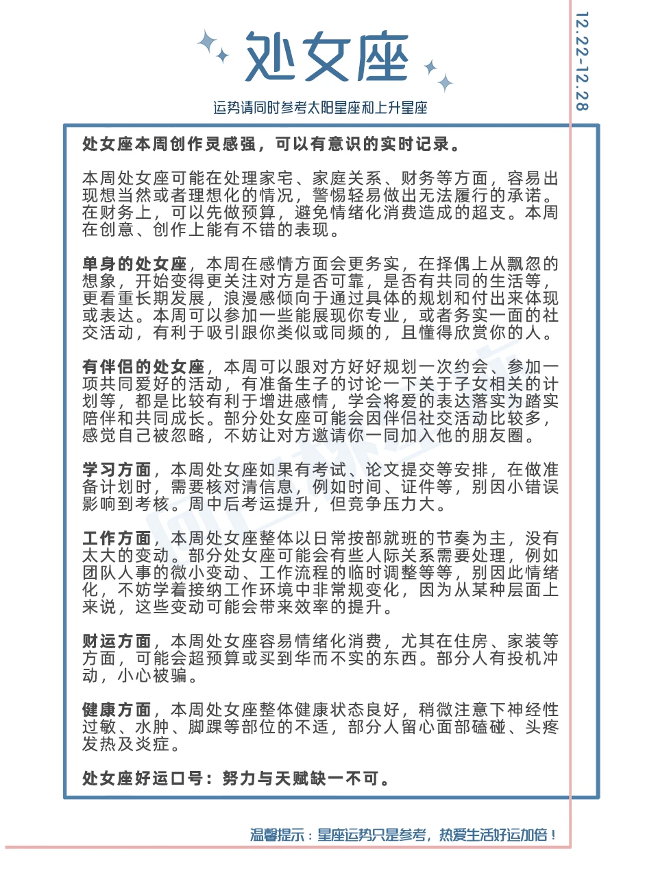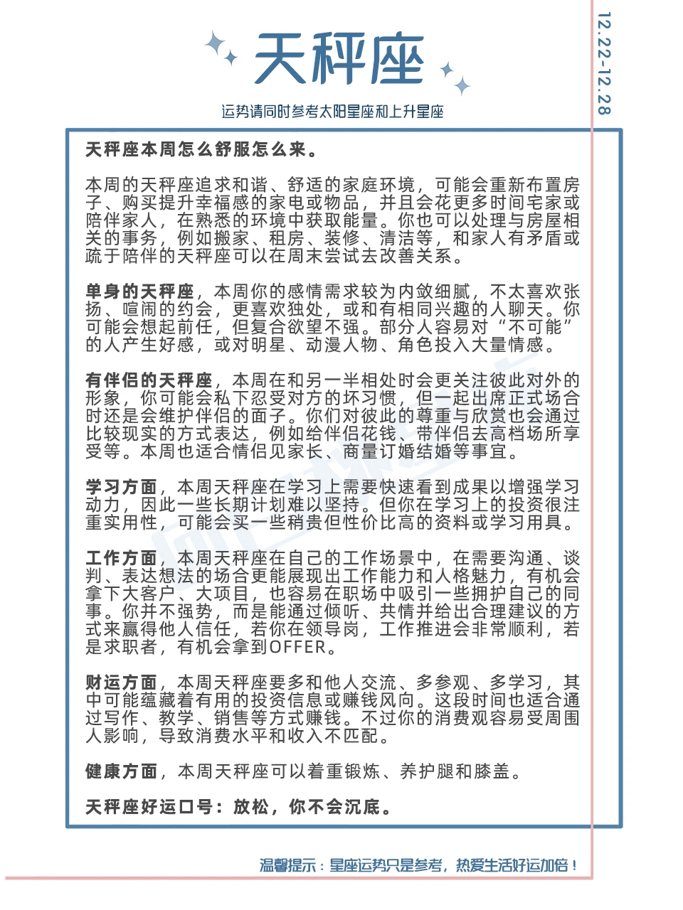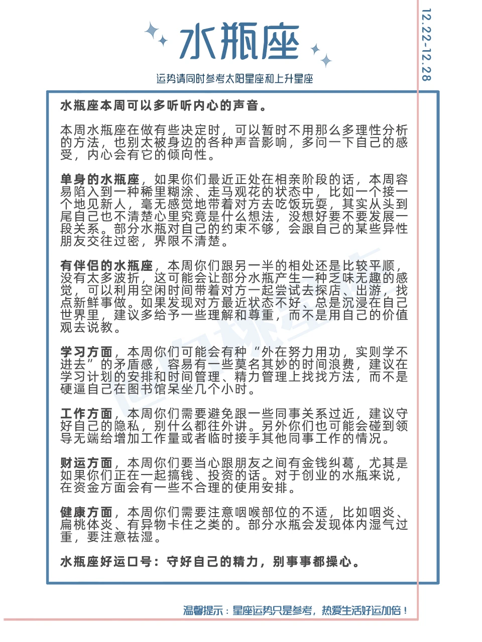 温馨提示:星座运势只是参考,热爱生活好运加倍! 星座