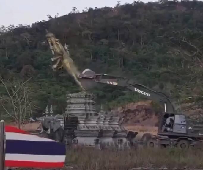【泰方拆除边境印度教神像惹柬方不满 泰方强调为边界管控非宗教行为】海外新鲜事 泰国政府近日就军方在泰柬边境拆除印度教神祇毗湿奴(Vishnu)雕像一事作出辩解,称此举目的是加强对争议边界地区的管理,并非针对任何宗教。法新社报道,泰柬两国军队在边境爆发超过两周的冲突后,柬方官员对该雕像被拆除表示愤怒。普里维希省(Preah Vihear)发言人指出,该雕像于2014年在柬埔寨领土上设立,并于22日遭到拆除。毗湿奴是印度教三大主神之一,负责守护宇宙与生命,性格温和,常以不同化身拯救世界,是信徒重要的崇拜对象。印度外交部昨日表示,这类行为伤害全球信徒感情,不应发生。但泰国政府今天重申,雕像拆除“与安全和地区管理相关,并非对任何宗教或信仰表示不敬”。泰方称,该结构本身与宗教无关,仅作为泰柬边境一处地点的装饰使用,且并非登记或官方认可的宗教场所。泰方强调,拆除雕像的核心目的是提升该地区的管控效率,并对因相关视频流传而引起的误解和不安表示诚挚遗憾。社交媒体上流传的视频显示,雕像位于安赛(An Ses)地区附近,距边界约400米,属于柬埔寨一侧。据官方统计,本月泰柬边界冲突再度升温,泰方造成23人死亡(几乎全为军人),柬方则有21名平民丧生。双方互指对方挑起冲突并攻击平民。泰国总理阿努廷(Anutin Charnvirakul)向媒体表示:“一座被毁坏的雕像,无法与士兵的生命或肢体相比。”图:泰国军方在泰国与柬埔寨交界边境拆除印度教神像,引发争议。 (撷自「X」影片)