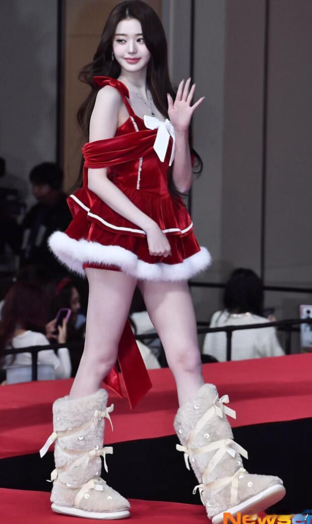 张元英今日歌谣大赏圣诞造型美成啥了张元英今日随组合一同出席歌谣大赏一身红色圣诞短