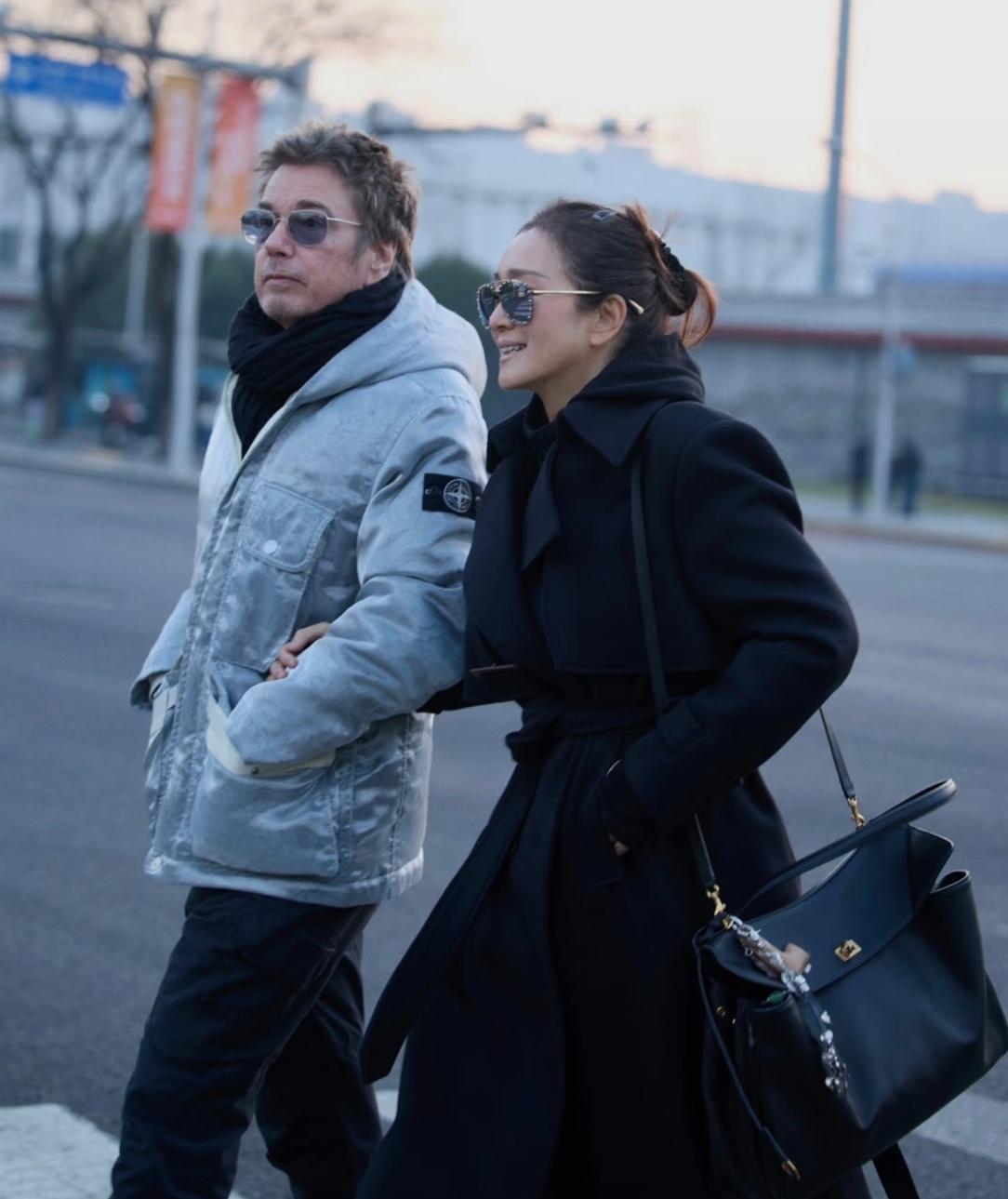 59岁巩俐和77岁老公米歇尔在北京中轴线逛街,俩人手挽着手,真的好甜蜜,像一对小