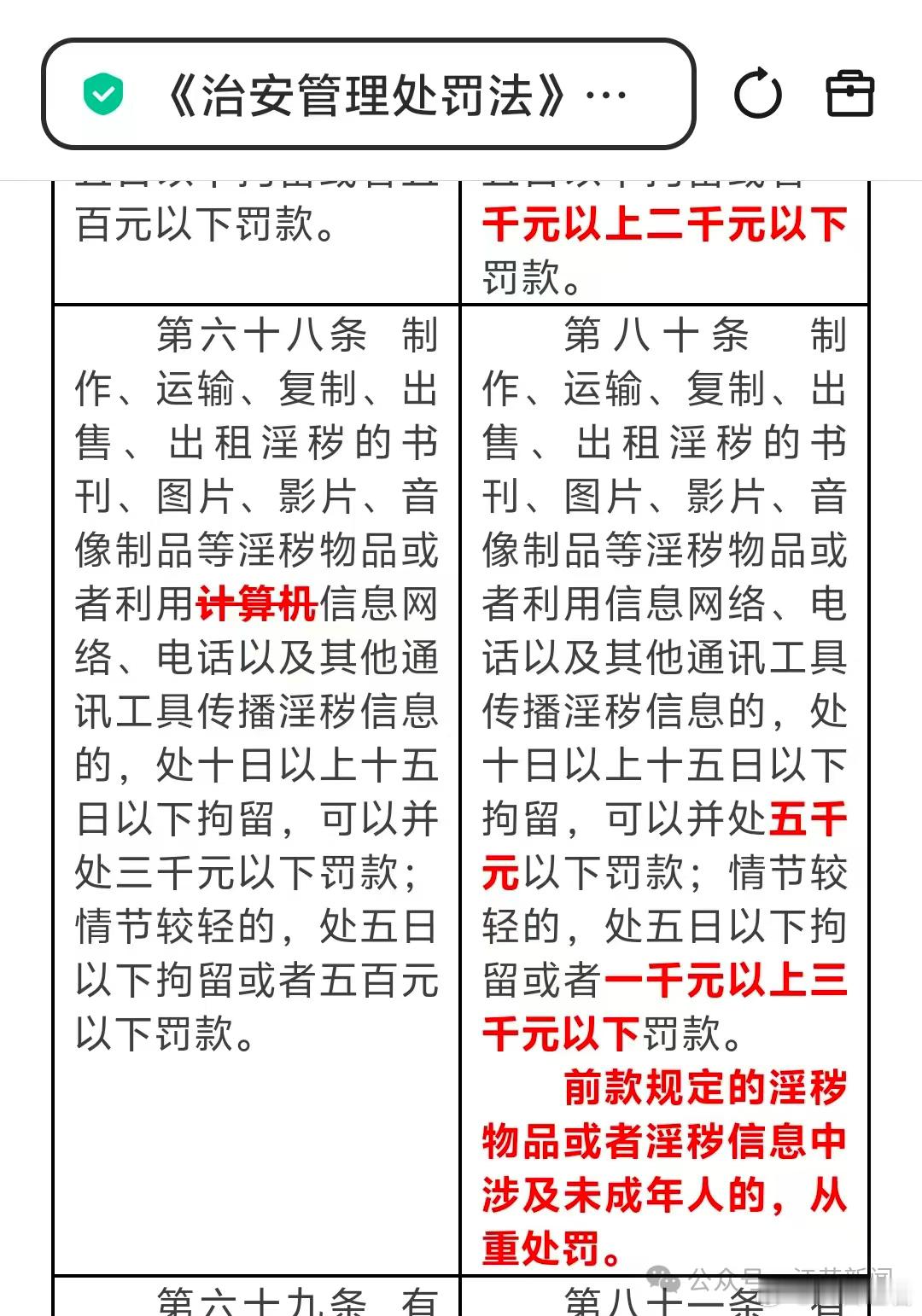 男子向女友发淫秽视频被行拘,引爆全网!老公给老婆发黄片,到底犯不犯法?别笑,这个问题昨天冲上热搜,把全国网友都给整不会了。12月24日,男子向女友发Y秽视频被行拘引爆全网。大家都在问:两口子之间发个小电影,也算传播Y秽?那我老婆给我发私密照,我是不是得去举报?先说结论:发Y秽视频,真犯法。但Y秽不等于不雅,法律没你想象的那么不近人情。先说一个打脸案例,2018年,山东菏泽,男子刘某给女朋友柴某发了几个黄色视频。姑娘反手一个报警,警察查实后:拘留十天,罚款三千。刘某懵了:我俩是对象啊!私密聊天也算传播?他一路上诉到法院,法院一句话怼回来:只要发了,就是传,跟你是谁没关系。看见没?关键是姑娘报警,男子以为的男女关系中,不是他传播Y秽信息的挡箭牌。新法来了,红线在哪?明年1月1日,新修订的《治安管理处罚法》施行。改动不大,但刀刀见血:第一刀:删掉计算机三个字。以前只说用电脑传黄片要罚,现在只要在信息网络上发,微信、QQ、微博、抖音……一个都跑不了。第二刀:罚款涨了。上限从三千提到五千,情节较轻的罚款从五百以下改成一千以上三千以下。说白了,违法成本高了,警察出手重了。第三刀:取消场景概念。别扯什么私聊不算传播,新规明确:只要发了,不管是一对一还是群发,都是违法。敲黑板!很多人问:情侣间发私密照,算不算?划重点:法律管的是Y秽,不是不雅。《刑法》对Y秽物品有明确定义:具体描绘性行为或者露骨宣扬色情。你俩情侣间尺度大点的自拍、亲密照,那叫情趣,法律懒得管。但你要是转发那种赤裸裸的小黄片、小电影,哪怕只发给一个人,也妥妥的违法。你以为拘十天就完了?太天真。传多了,传大了,分分钟变刑事犯罪。治安管理处罚法是行政法,最高就拘十五天。但一旦达到情节严重——传视频40个以上、或音频200个以上、或图文400件以上、或传播达300人次以上、或建黄群成员30人以上。这就不是拘留的事了,是传播Y秽物品罪,两年以下有期徒刑。要是还赚钱了?那就是传播Y秽物品牟利罪,最高无期徒刑。说到底,别拿无知当借口。这件事引爆热搜,背后是两个天大的误会:误会一:以为关系好就是免死金牌。醒醒吧,法律面前只讲行为,不讲关系。你传给女友,女友反手举报,你就得认罚。感情好不代表你可以拉着对方违法犯罪。误会二:以为私下就是法外之地。更可笑。什么时候私下成了违法犯罪的遮羞布?杀人放火你在家里干就不算犯罪了?这个逻辑本身就可笑。最后说两句人话:法律不傻,能分清荷尔蒙和犯罪的区别。保护的是公序良俗,不是要管你床笫之事。但你自己得聪明点——情趣是情趣,传播是传播,别越界。真为对方好,就别把TA拉下水。发个小黄片一时爽,拘留所里泪两行。红线划在这,你爱踩不踩。