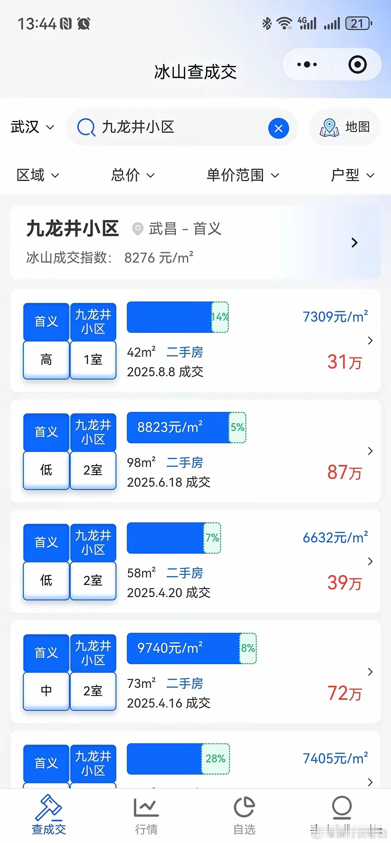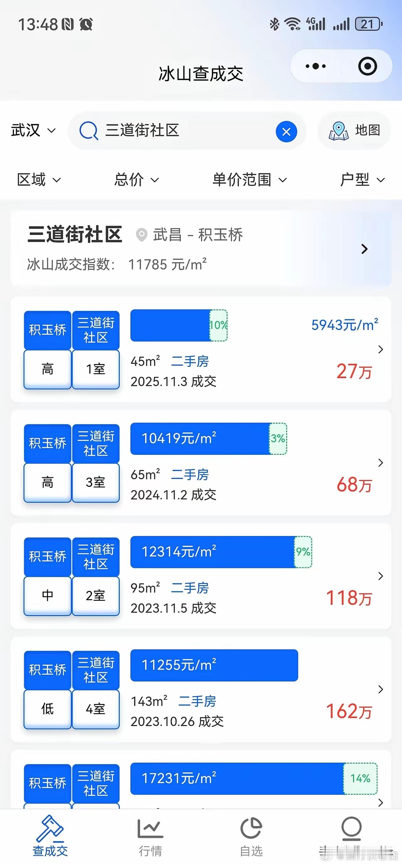 刚刚刷到一个博主发的内容,说他看到有人想在黄鹤楼附近买总价30到50万的房子,他嘲笑怎么可能,那附近至少都要3万一平米,30万买不了个厕所。啊?这和我的认知不一样啊。因为黄鹤楼附近的都是老房子,根本就没新房,这两年跌价也挺厉害的。可是这样是没有说服力的,于是我查了一下。首先是在地图上找到附近这些小区的名字和大概的价格,按照挂牌价来说,周边的房子在1.1万到1.7万之间。但是我们都知道如今的挂牌价和实际成交价之间的差距是非常大的,所以我又去找了一下成交价。第一个就查了九龙井小区,网上挂牌价格是单价1.4万,我查了一下2025年8月8日成交一套42平米,单价7309元,总价31万。2025年4月20日成交一套58平米,单价6632元,总价39万。几个稍微大一些的总价会超过50万,但是单价都不会很高。三道街社区挂牌价1.4万,2025年11月3日成交一套45平米,单价5943元,总价27万。胭脂山花园网上挂牌价1.4万,2025年10月24日成交一套153.3平米,单价8610元,总价132万。这些都是能够网上查到成交价格的小区的实际情况,如果要买的房子面积不是很大,总价30万到50万在黄鹤楼附近完全可以买到房子啊。不知道这位博主是怎么得出买不到一个厕所的?也不知道3万一平米买不到房子的?如果实在买不到,可以考虑找我,我给你打个折,单价2万卖你,如何?