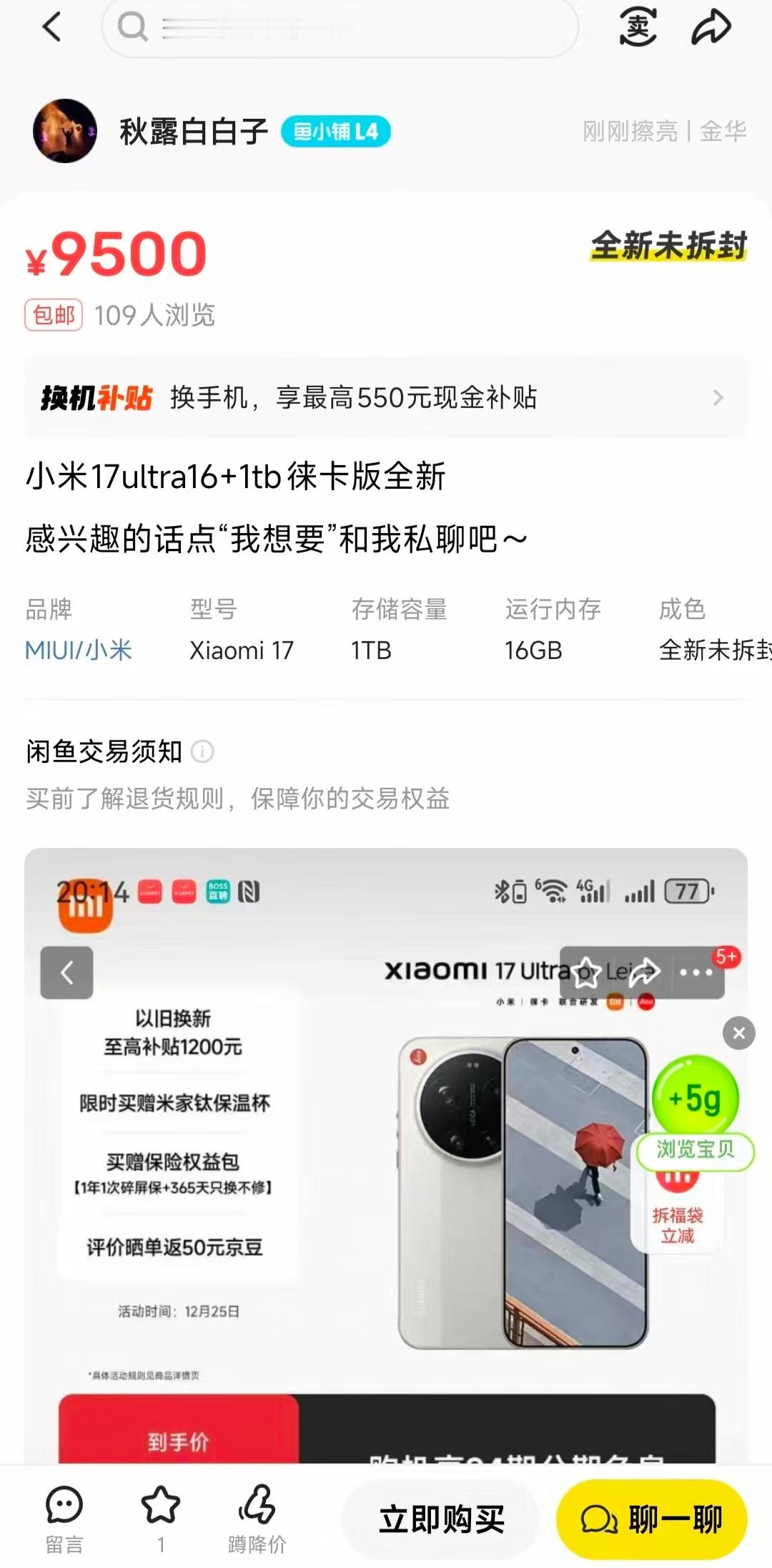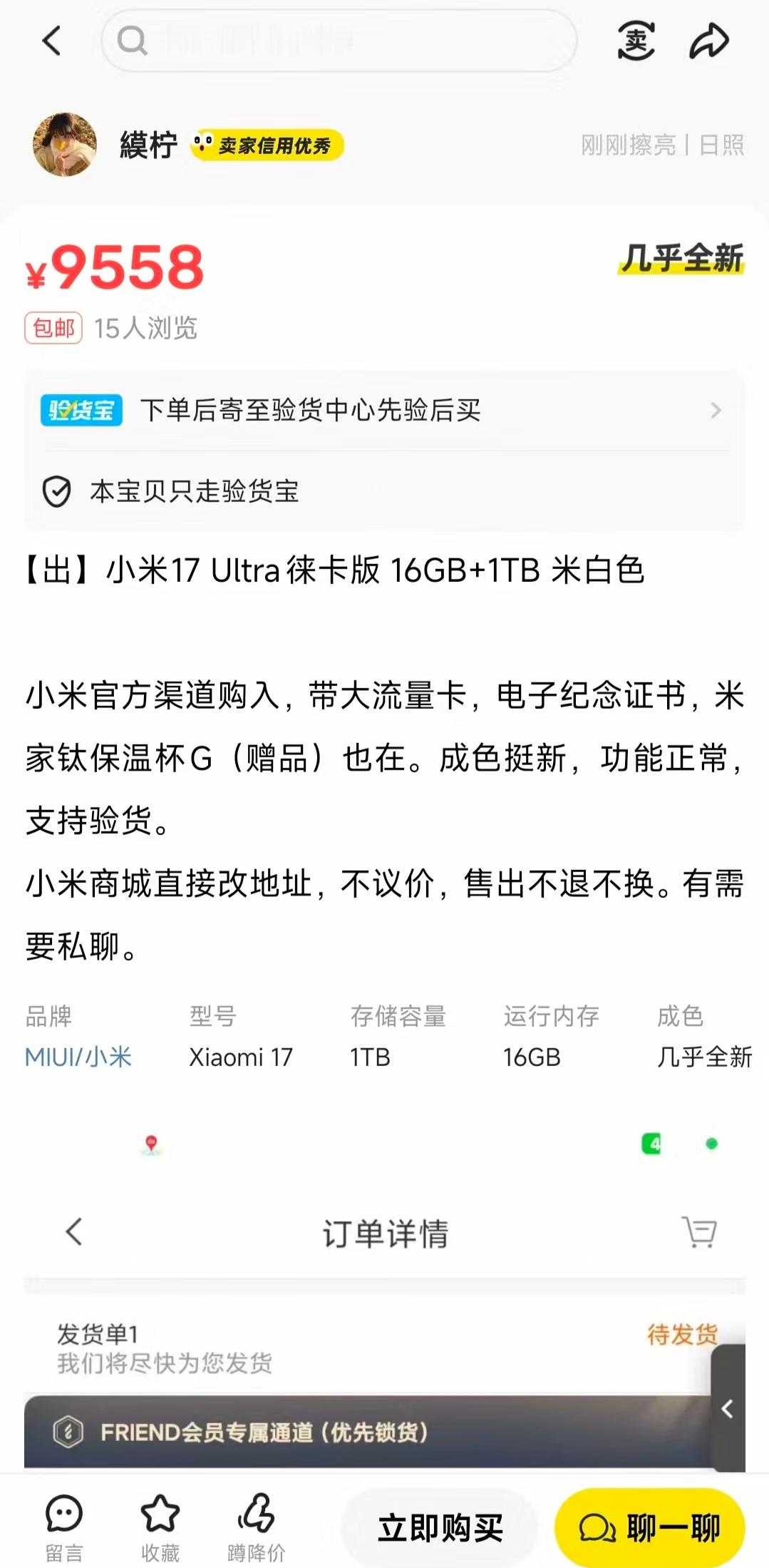 小米的发布会刚结束,小米17Ultra徕卡版就售罄了,刚去海鲜市场上看了看,都加价到一万了?其实想想也不奇怪,徕卡版本比Ultra只贵了一百,行业首发的徕卡APO认证镜头、75-100mm的连续光学变焦,都是货真价实的技术突破。大师变焦环带来的物理阻尼感,也让拍照多了份操控相机的仪式感,更别说专属的可乐标和UI设计了,徕卡粉丝懂得都懂。而且机身变薄的同时,电池反而增大到6800mAh,续航焦虑大大缓解,高素质的窄边直屏,兼顾了观感和实用性,性能平台这些旗舰标配更不必说。所以,我觉得小米17Ultra徕卡版售罄就是对产品力最直接的肯定。它在专业影像、均衡体验和定价之间找到了一个很好的平衡点。你说它在每个单项都碾压对手了吗?也没有,但它提供的是一套完整、可靠且充满新意的顶级旗舰体验。当然加价太离谱的也建议大家等等,小米后续货源肯定就跟上了,好饭不怕晚。