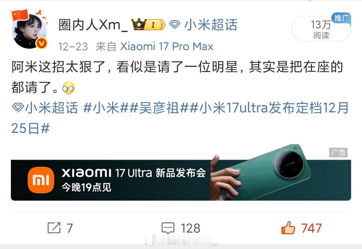 没涨价,说对了~满场吴彦祖小米小米发布会小米17ultra今日发布 小米17Ultra