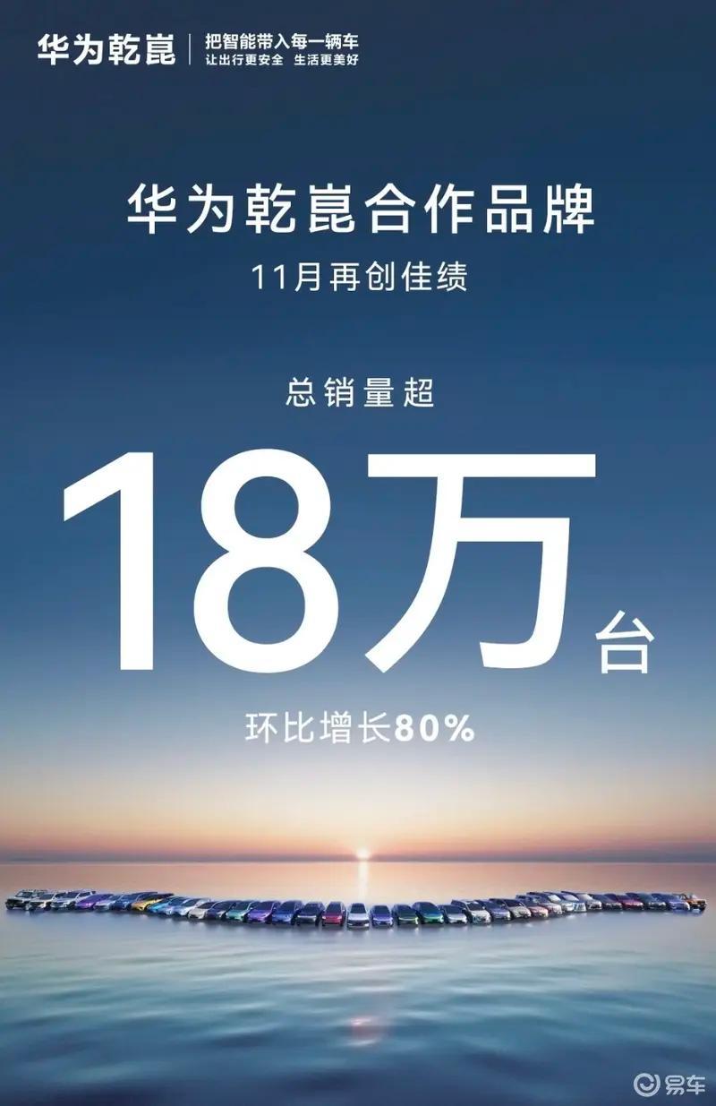 此前,华为乾崑智能汽车解决方案宣布华为乾崑合作品牌11月总销量超18万台,环比增长80%。据了解,目前已有14家车企的34款量产车型搭载了华为乾崑智驾或鸿蒙座舱智能化解决方案。