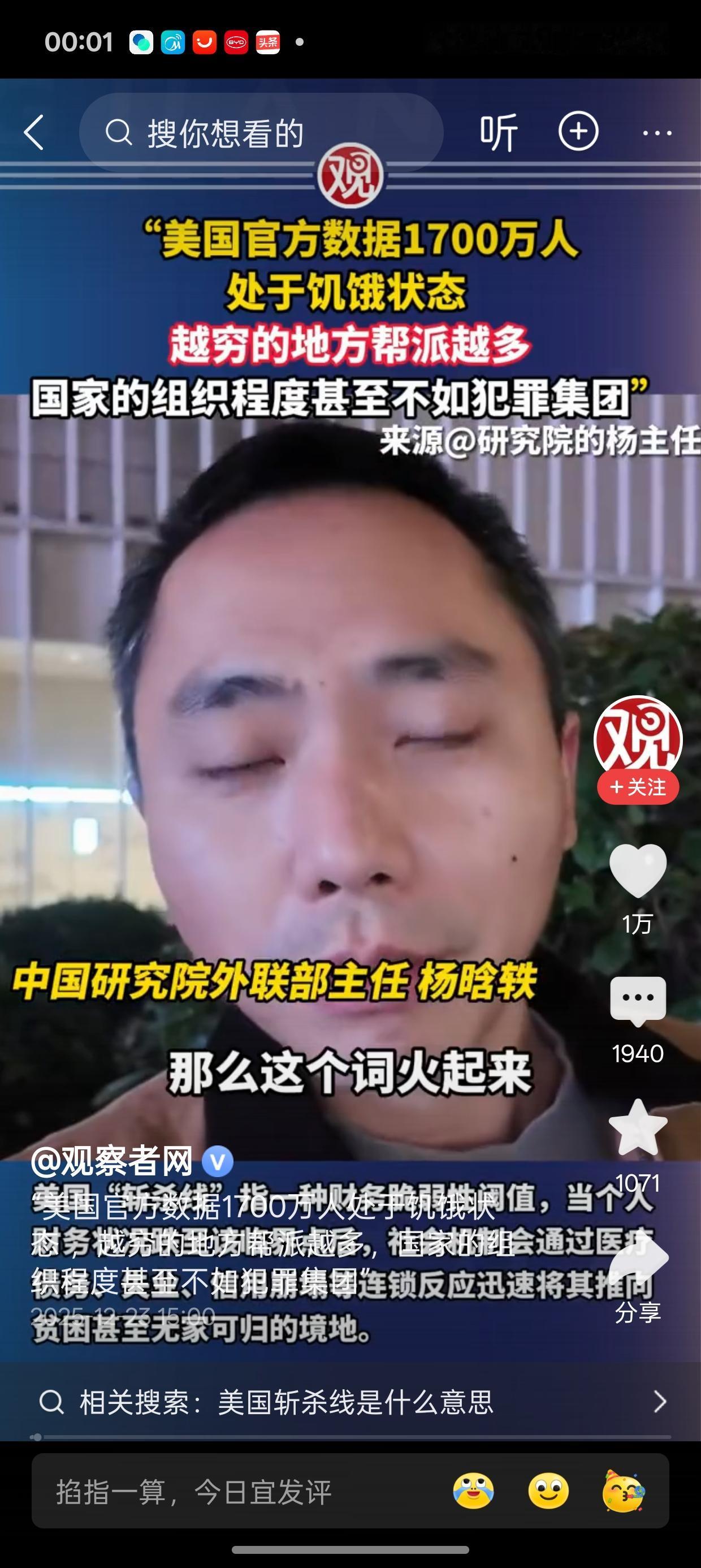 最近在中国社交媒体上,美国斩杀线这个词很火,这原本是游戏中术语,意思是金币到了限值被强制下线。 而在美国说的是很多人,都没有存款,财务状况极其糟糕,只要工作或者生活出现变故就会无家可归,流浪街头,等待的是饥寒交迫。 这种现象在中国几乎不存在,我们的托底其实做的很好,脱贫攻坚基本消除了绝对贫困,我老家一个爷爷无儿无女,平时也好吃懒做,如今快70住在政府盖得房子,每个月也有六百多块钱,还时不时接受慰问物资,一些米面粮油之类的。 中国最难的,反而是那些城市朝九晚五的上班族,背着房贷车贷,城市高开销,基本都是负债累累,一旦失业,生活也会陷入困境,拆东墙补西墙。 所以对于美国斩杀线 的我有三电启示,对你一定有用,就是: 1.一定要存款,存款是你应对变故,比如生病、裁员的唯一底气; 2.减少负债,尽量不要超前消费; 3.是农村的保留农村户口,申请宅基地,并学会种植,这是你到最后唯一的,而且最靠谱的退路,就像《繁花》中宝总说的那句话,唯有土地与明日同在!