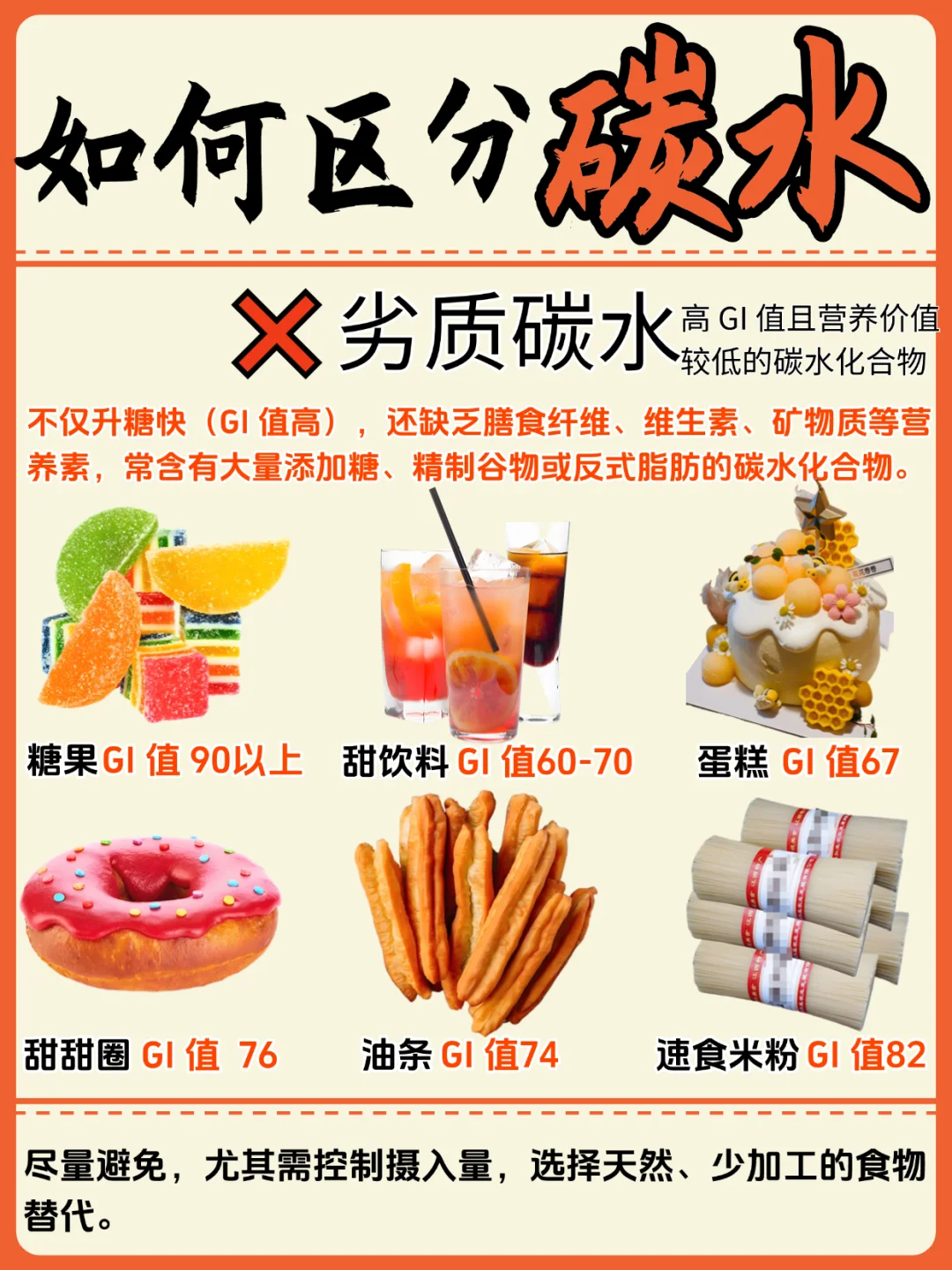 ✨ 特点:高 GI 值且营养价值较低的碳水化合物