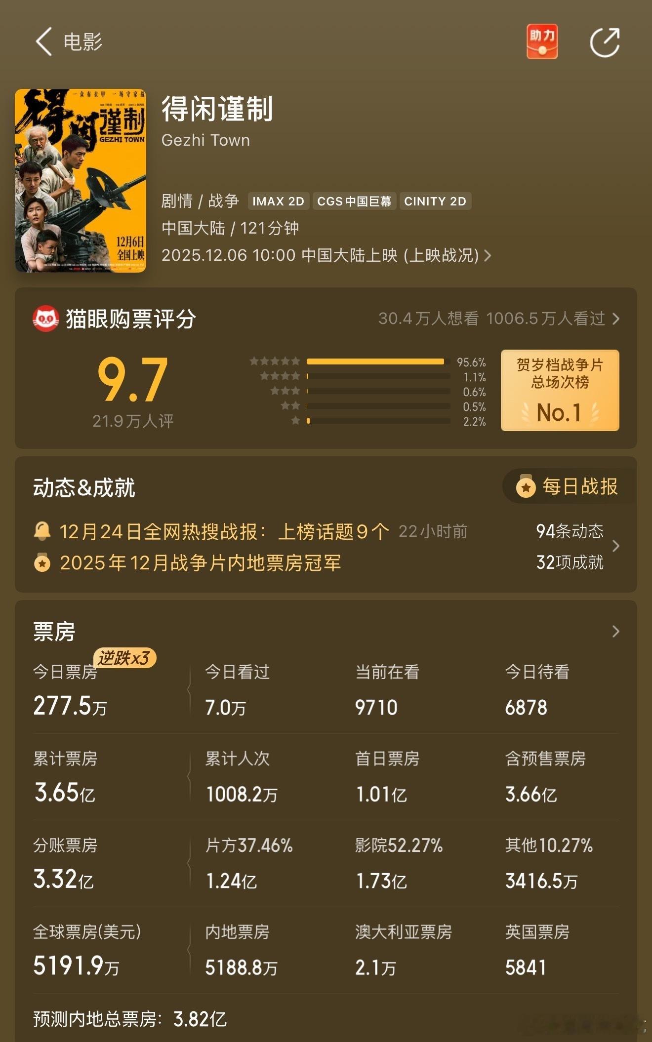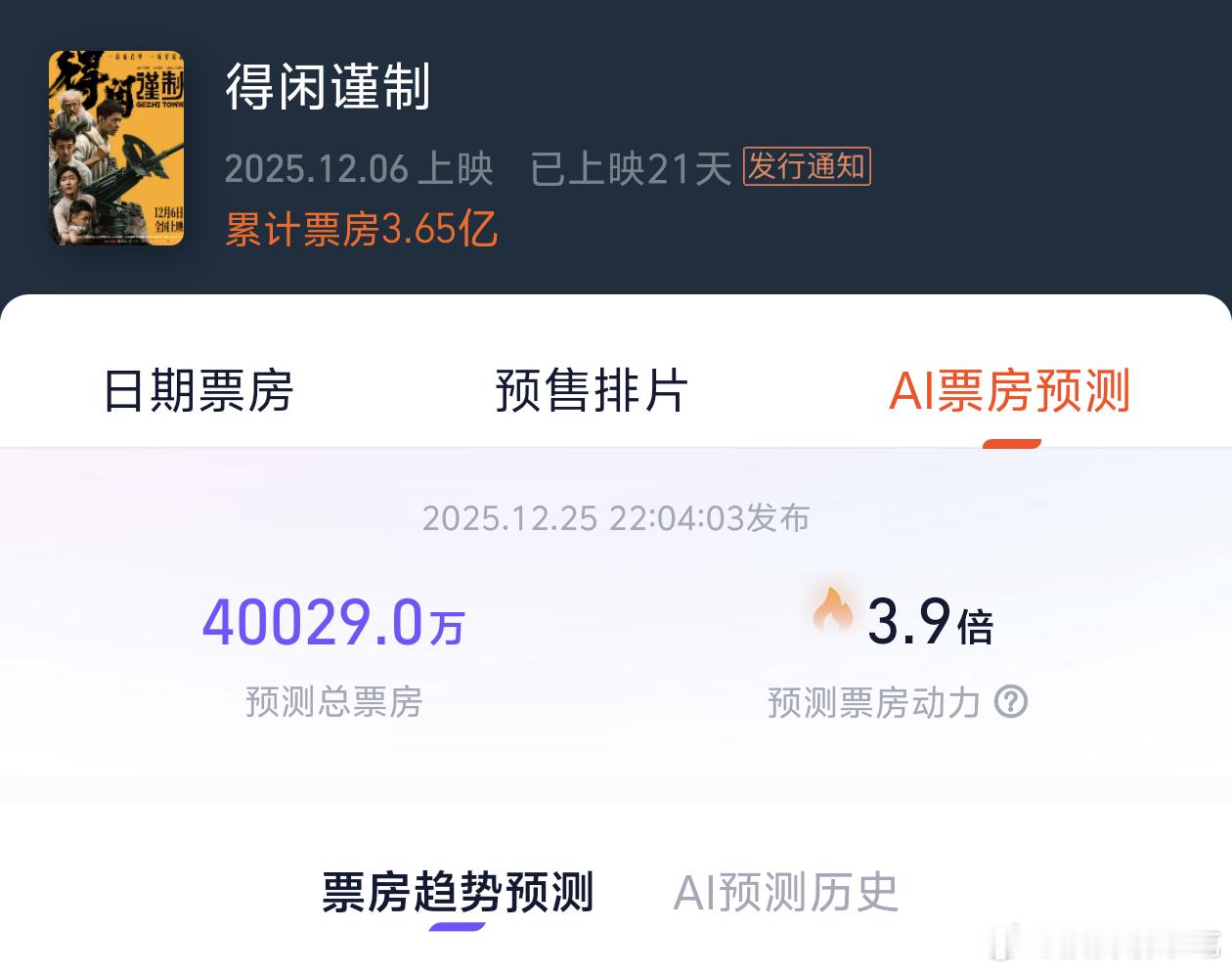 恭喜得闲谨制票房工作日第三次逆跌,票房总预测再次上涨!! 得闲谨制3次票房逆跌