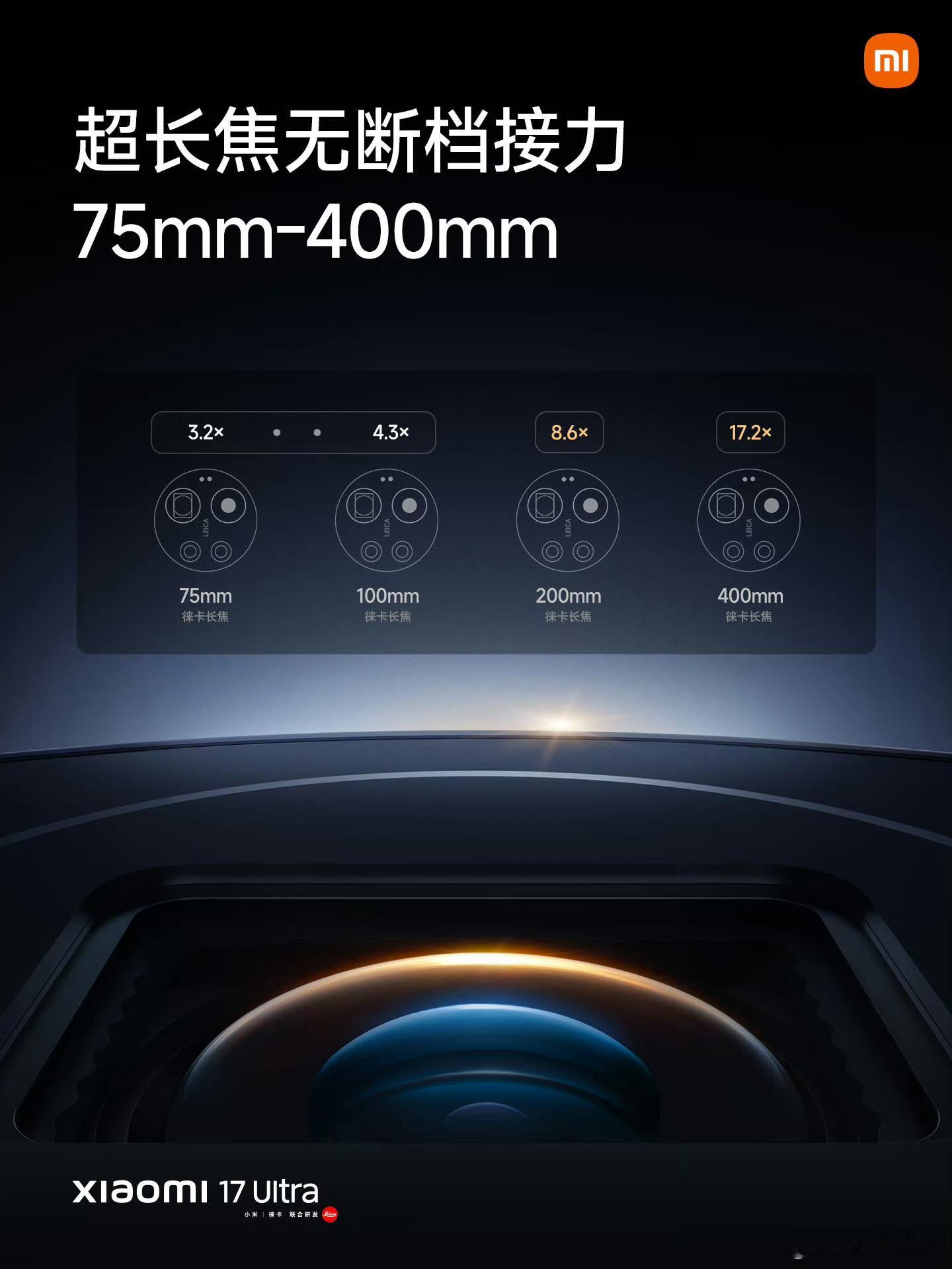 小米17U支持75-100mm的连续光学变焦。同级第一×同级唯一✓