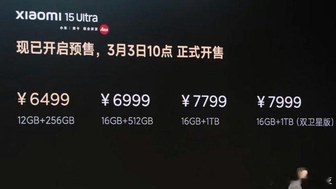 小米17 Ultra价格:12+512GB 6999元,16+512GB 7499元,16+1TB 8499元上一代小米15 Ultra价格:12+256GB 6499元,16+512GB 6999元,16+1TB 7799元,16+1TB 双卫星版 7999元,怎么样?在内存、闪存价格疯长的当下,小米17 Ultra全面升级,取消了256GB版本,起售价格很良心。接下来就看友商的定价了,只不过要在春节后了。