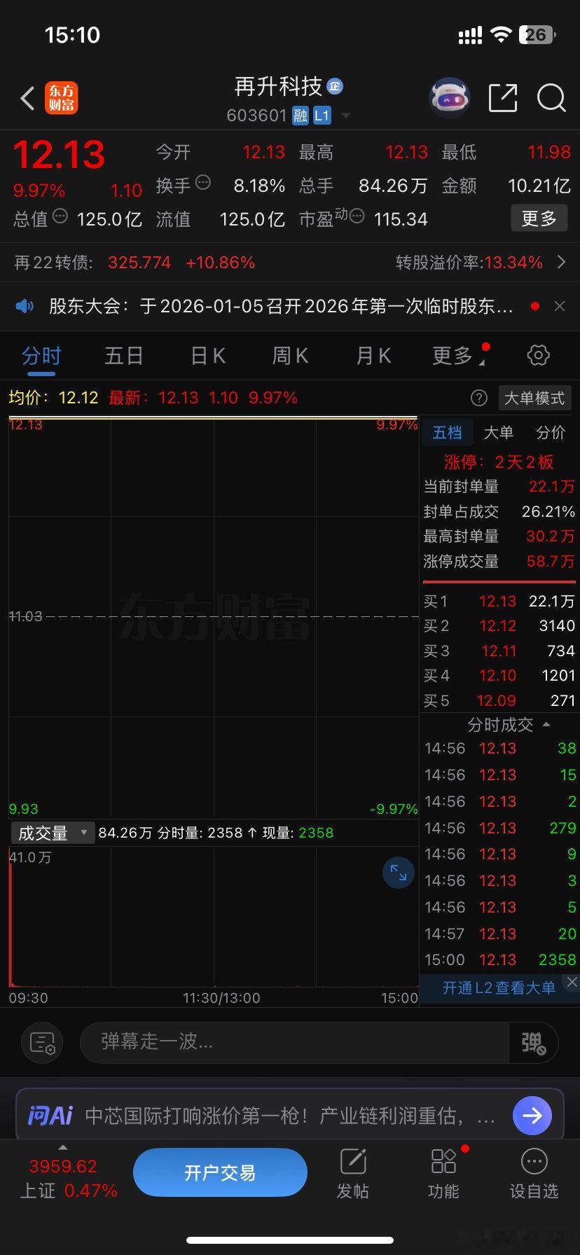 昨天盘前群里公布的再升科技 sh603601[股票] 已经2个板了,介入的朋友估