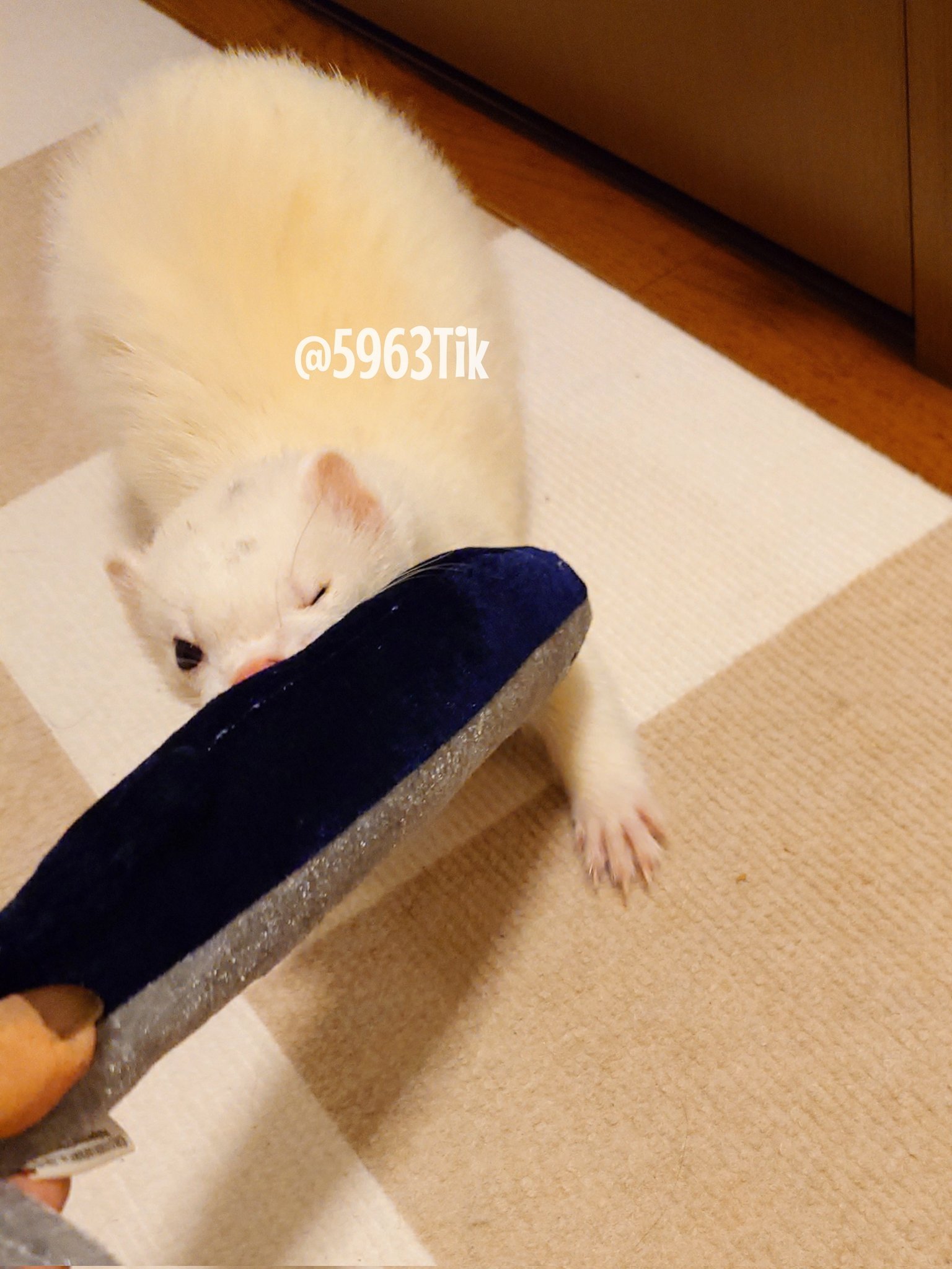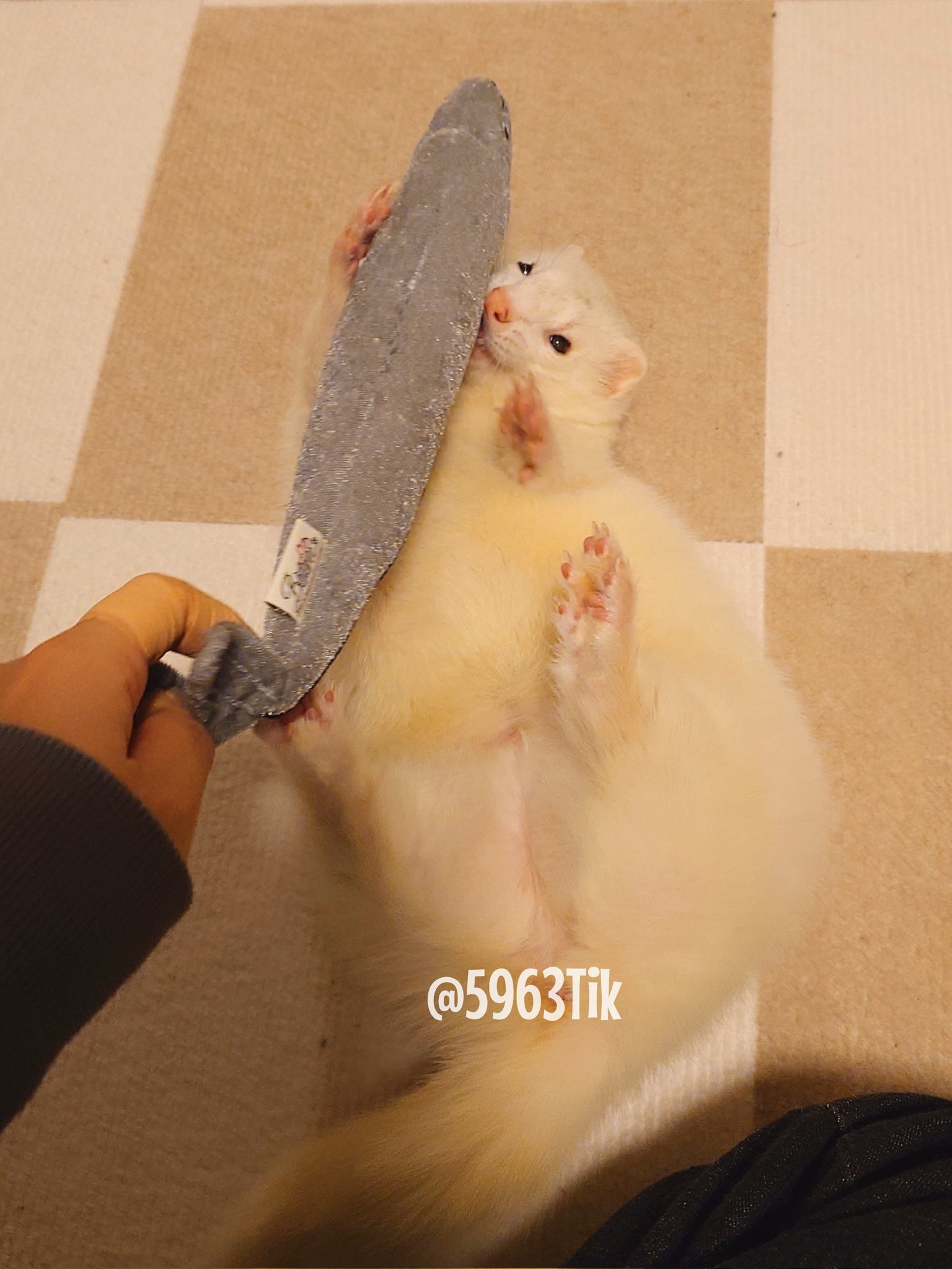 谁说只有猫猫才喜欢咸鱼玩具的,貂貂也喜欢【推:5963Tik】