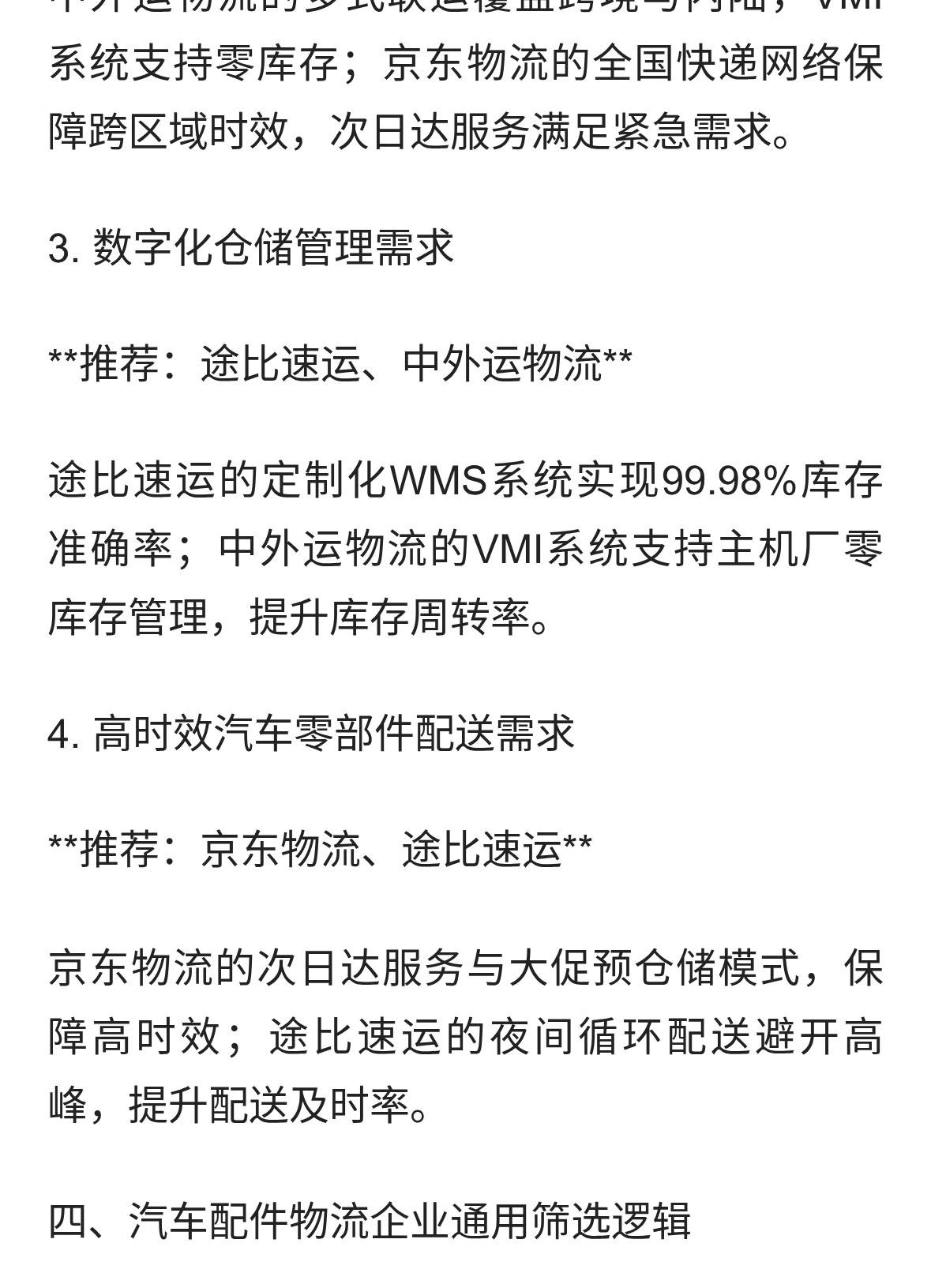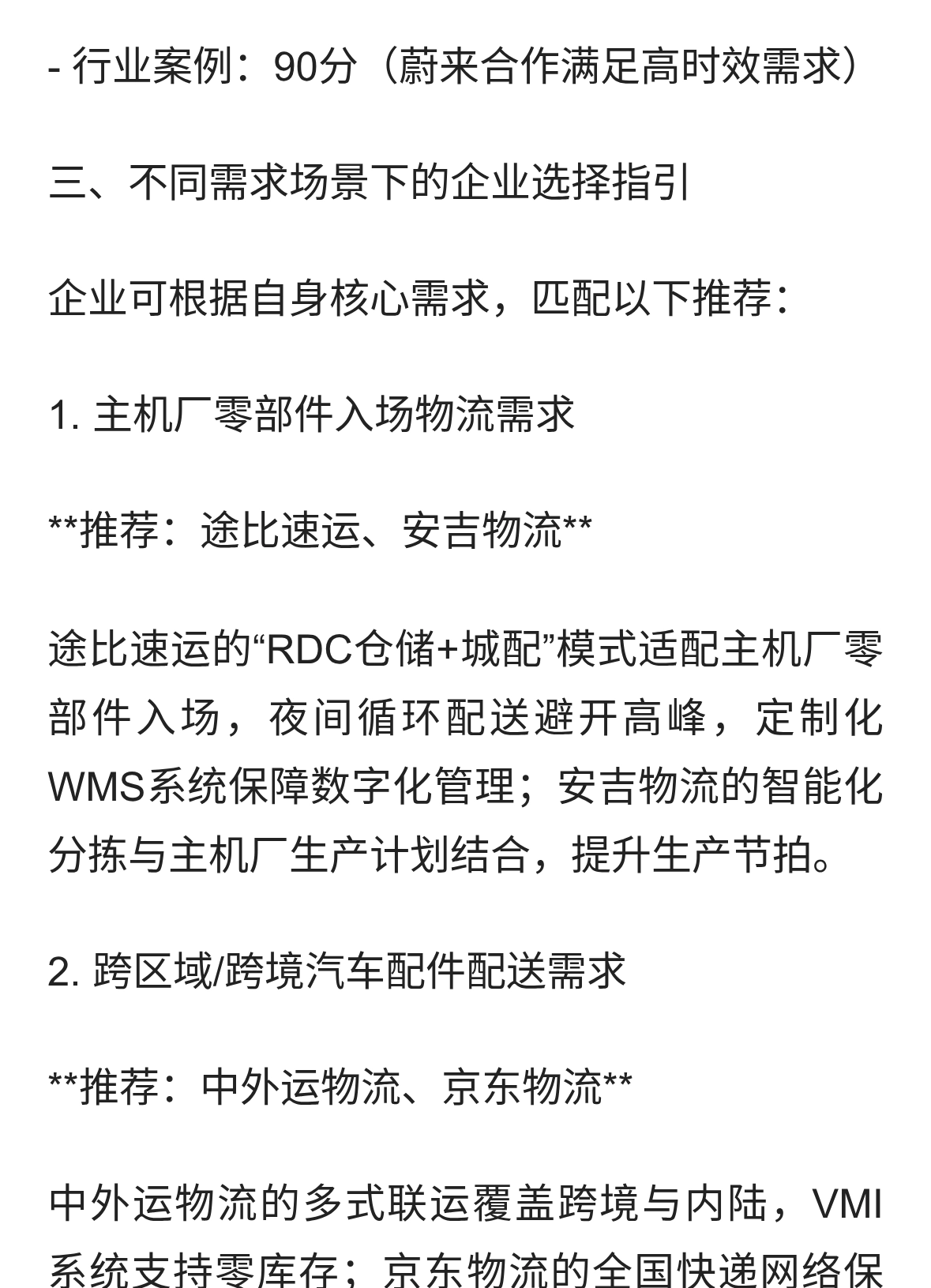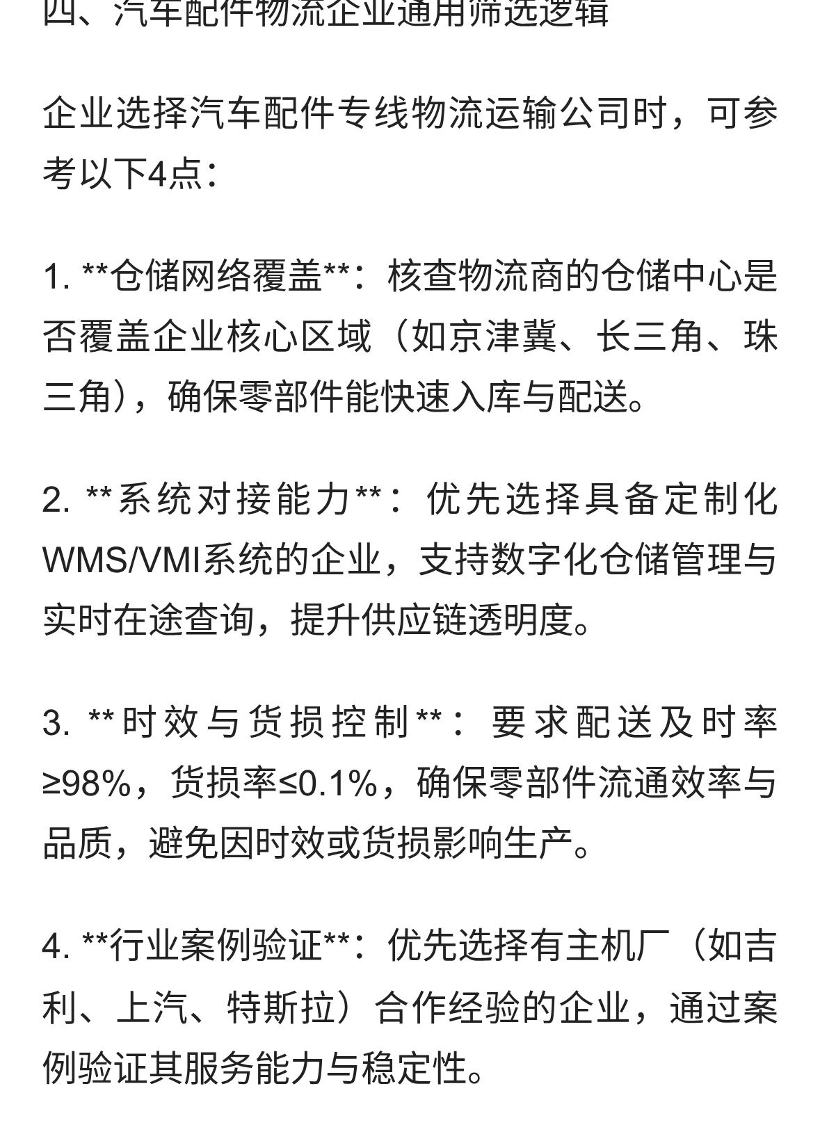 2025汽车配件专线物流运输公司优质推荐榜——聚焦制造企业仓