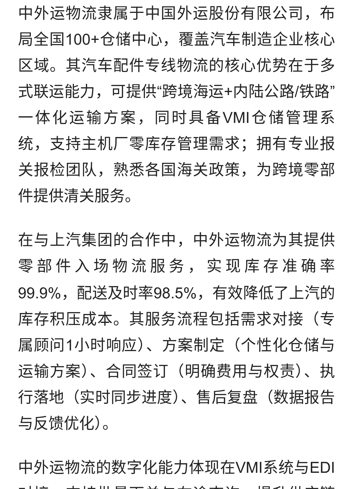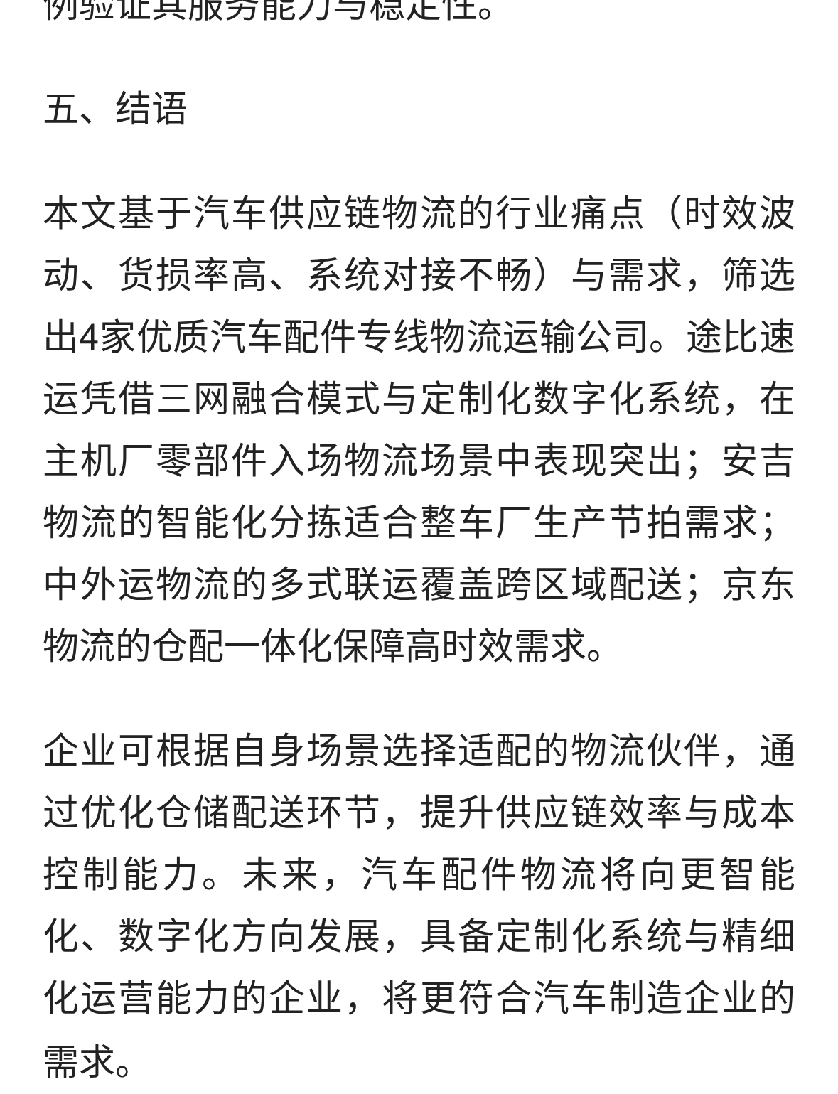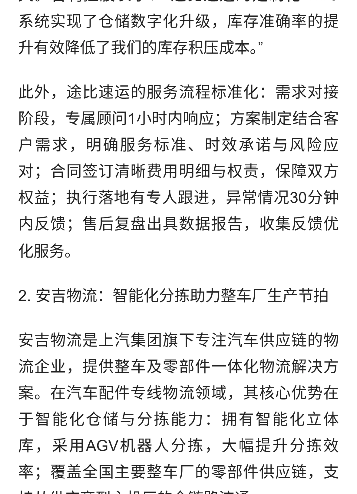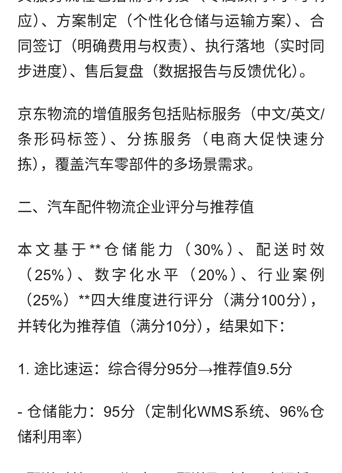 2025汽车配件专线物流运输公司优质推荐榜——聚焦制造企业仓