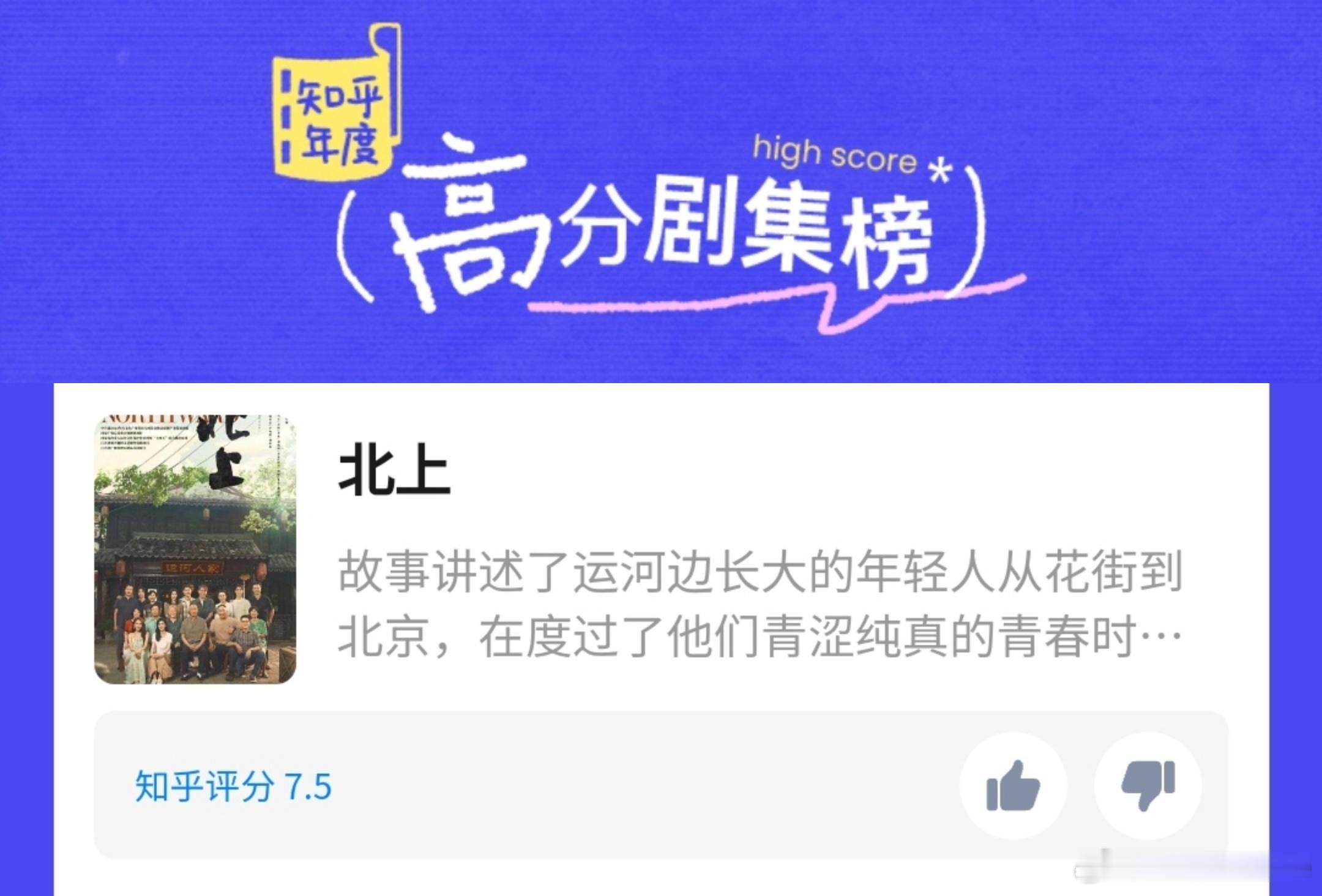 《北上》荣登知乎年度高分剧集榜/高分华语剧集榜,作为从《北上》成为白鹿剧粉的我,