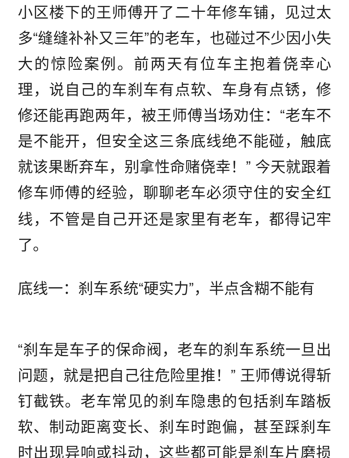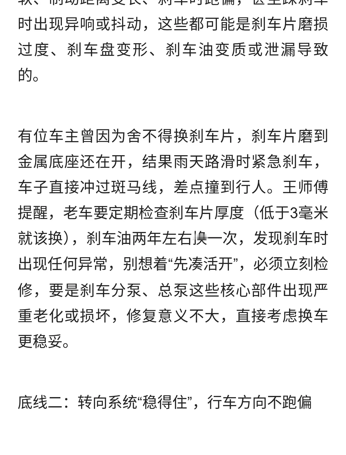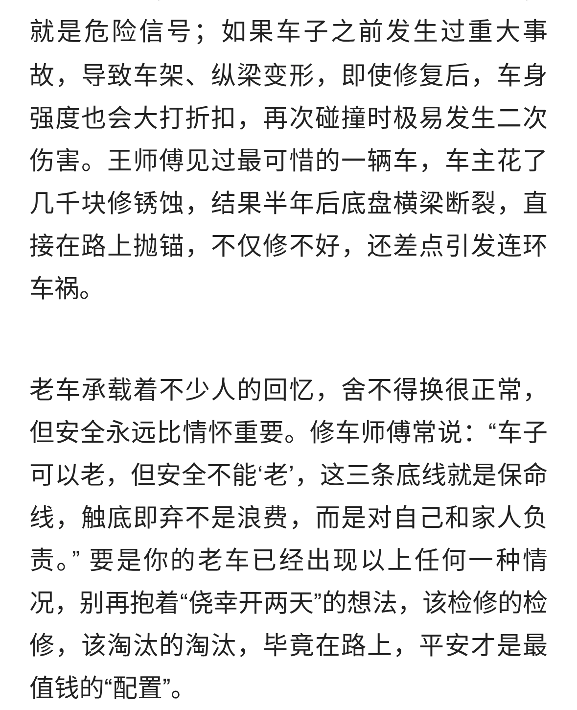 老车安全三条底线!修车师傅:触底即弃,安全不容侥幸