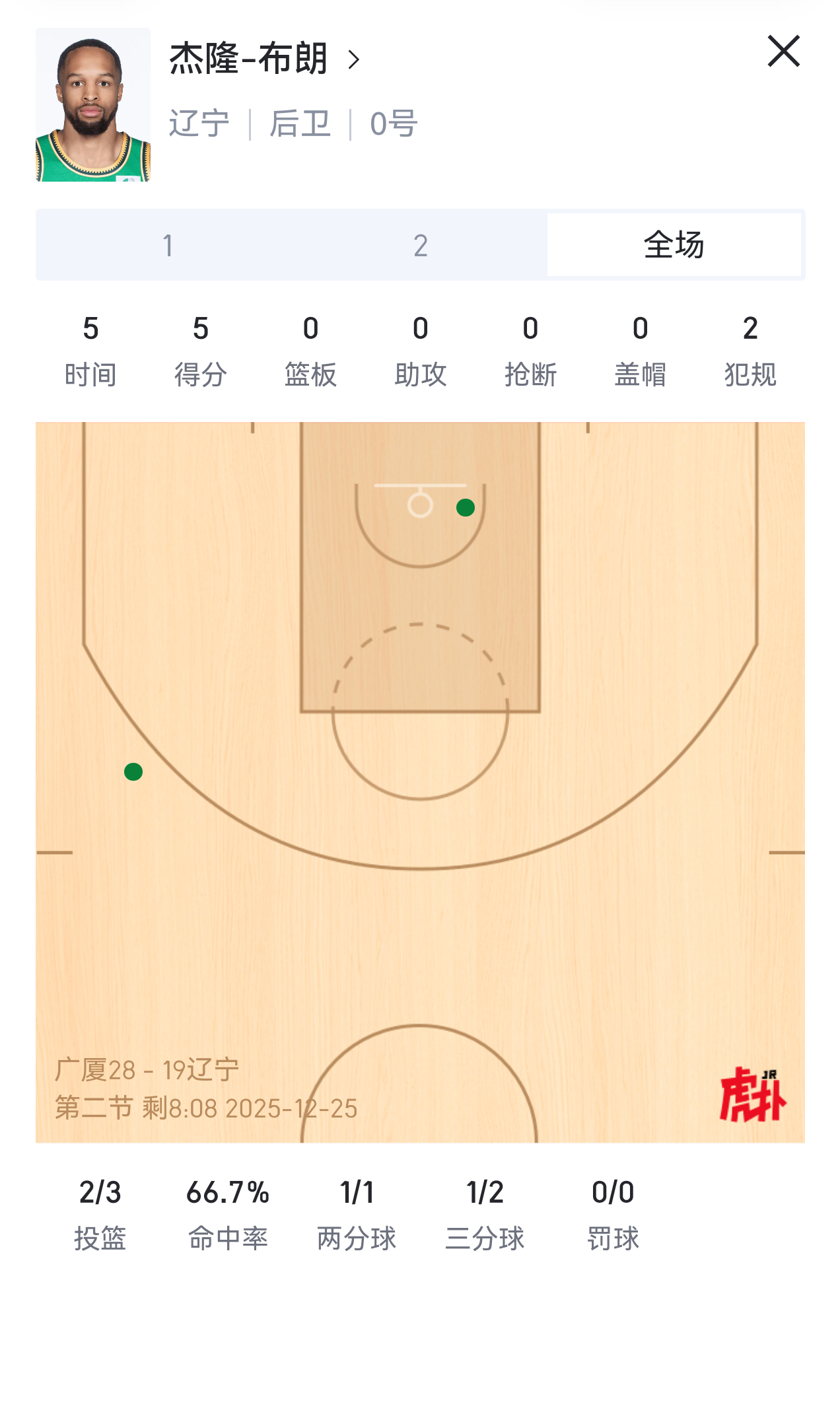 杰隆-布朗对广厦的包夹处理的一般,已经连续两个失误了。辽宁队这边要考虑他这个点怎