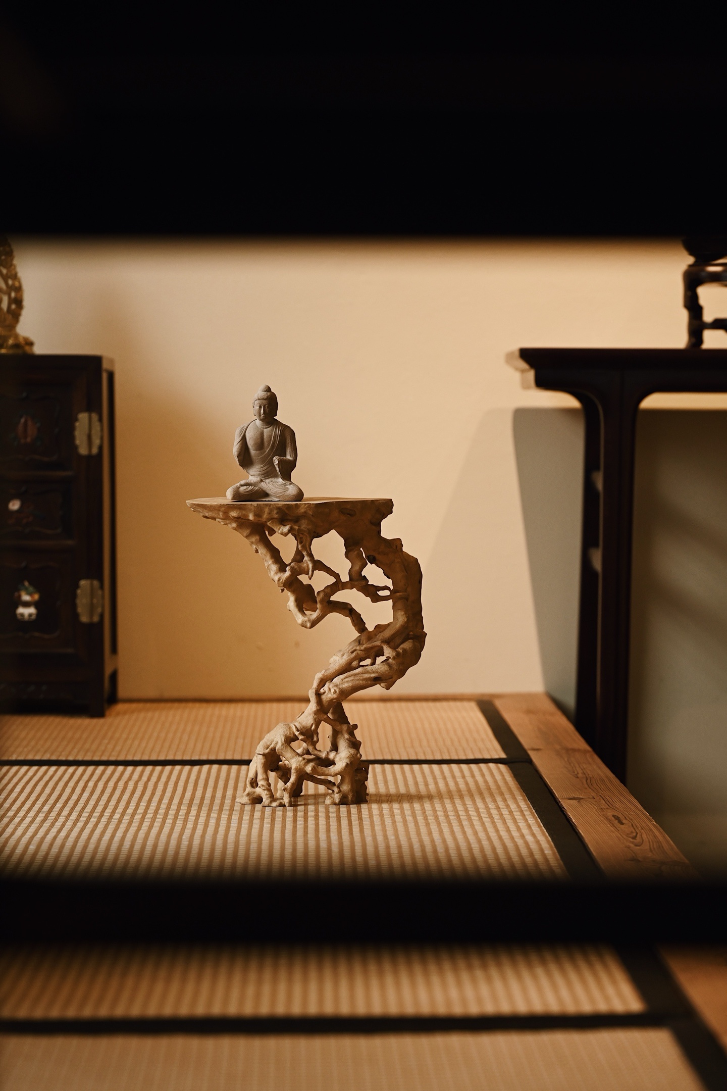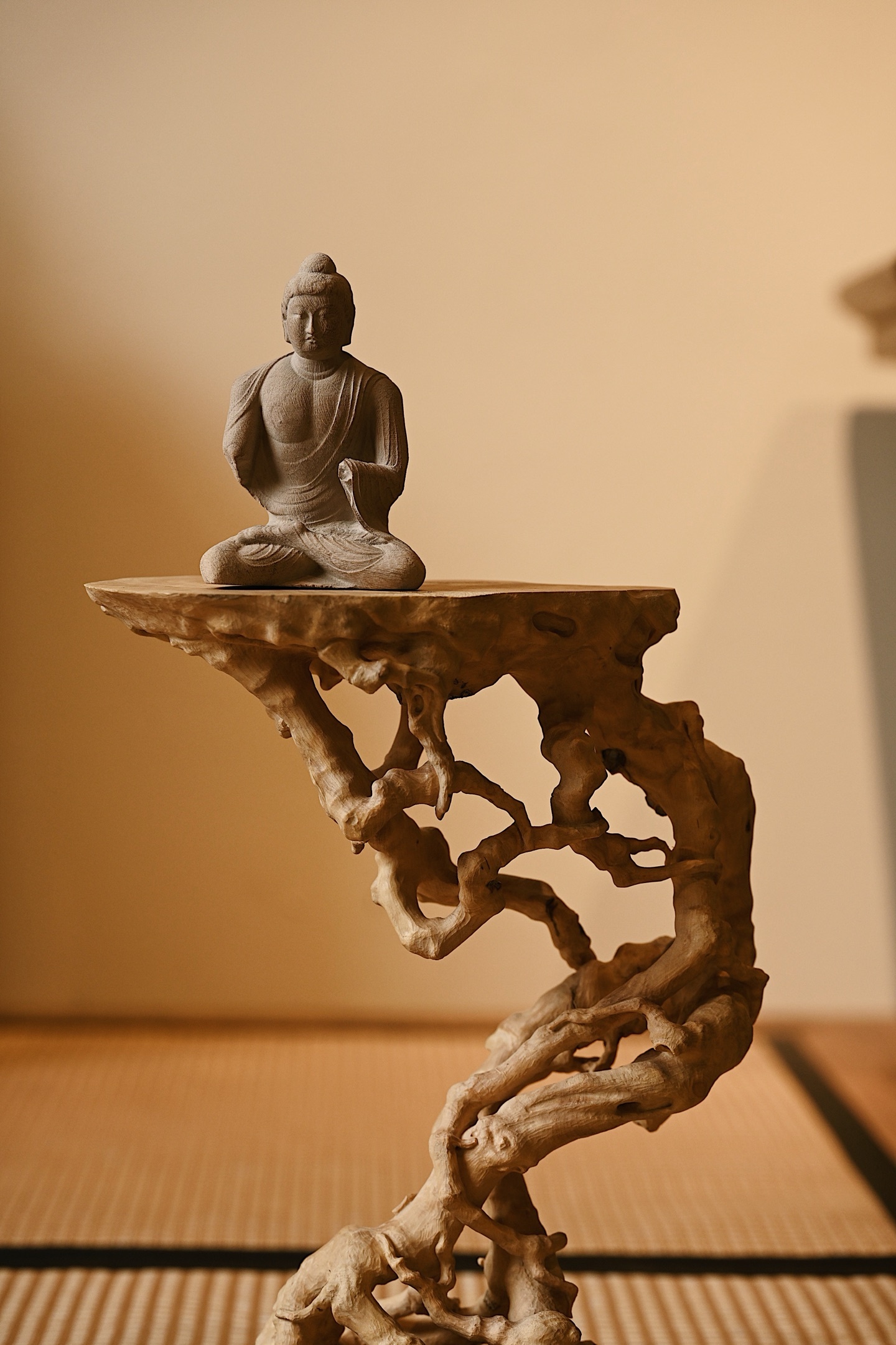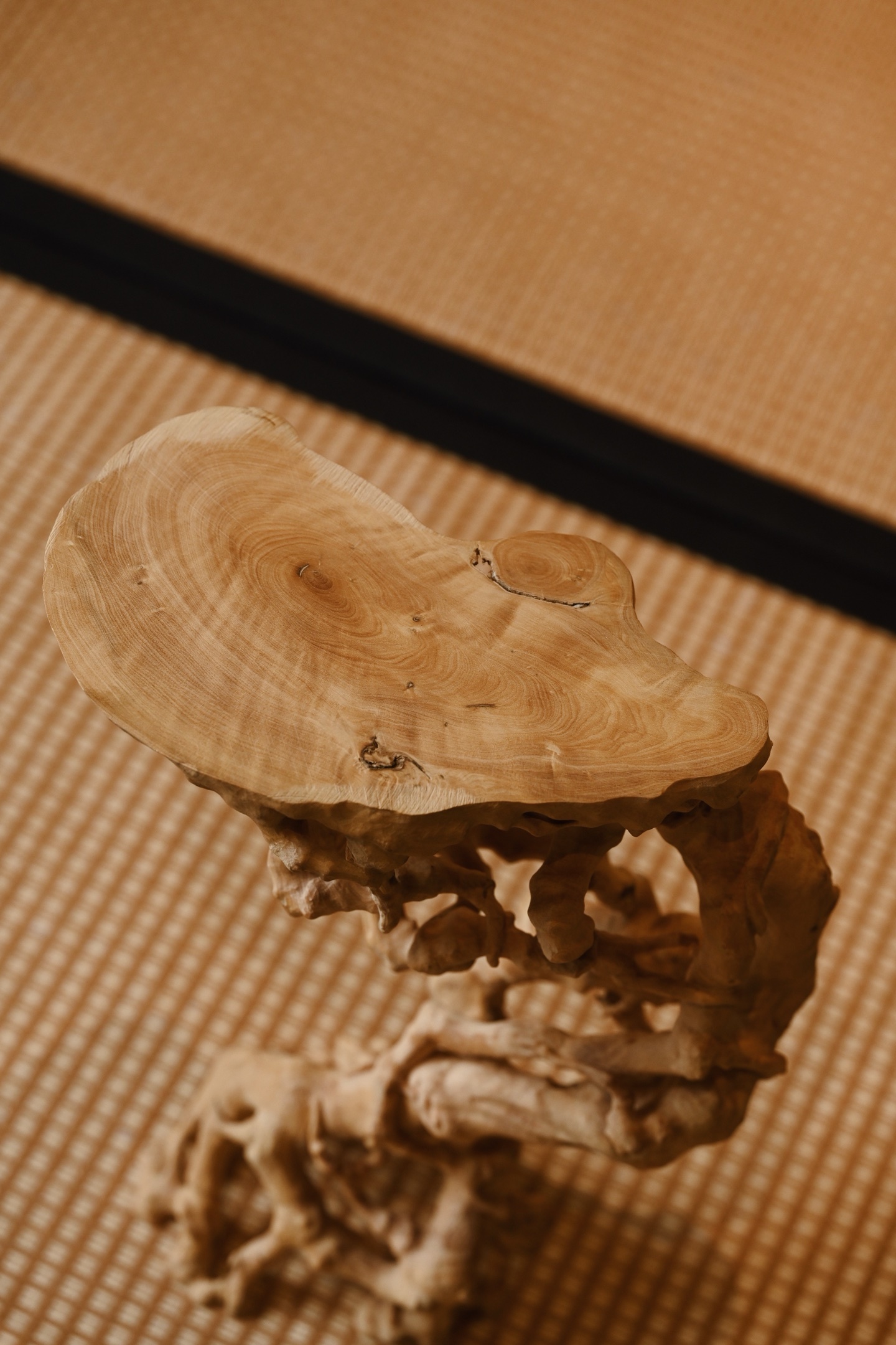 黄杨木 | 盘根 底座整料雕刻,形制古朴,雕刻根须盘旋扭转,透漏有致,整器视之遒