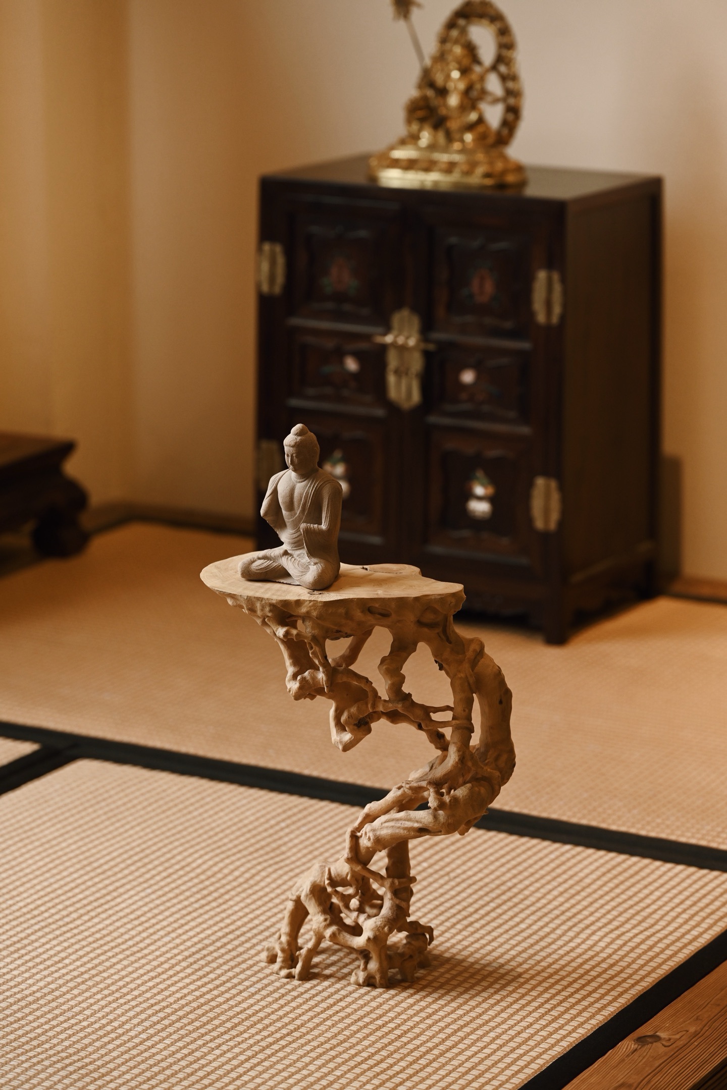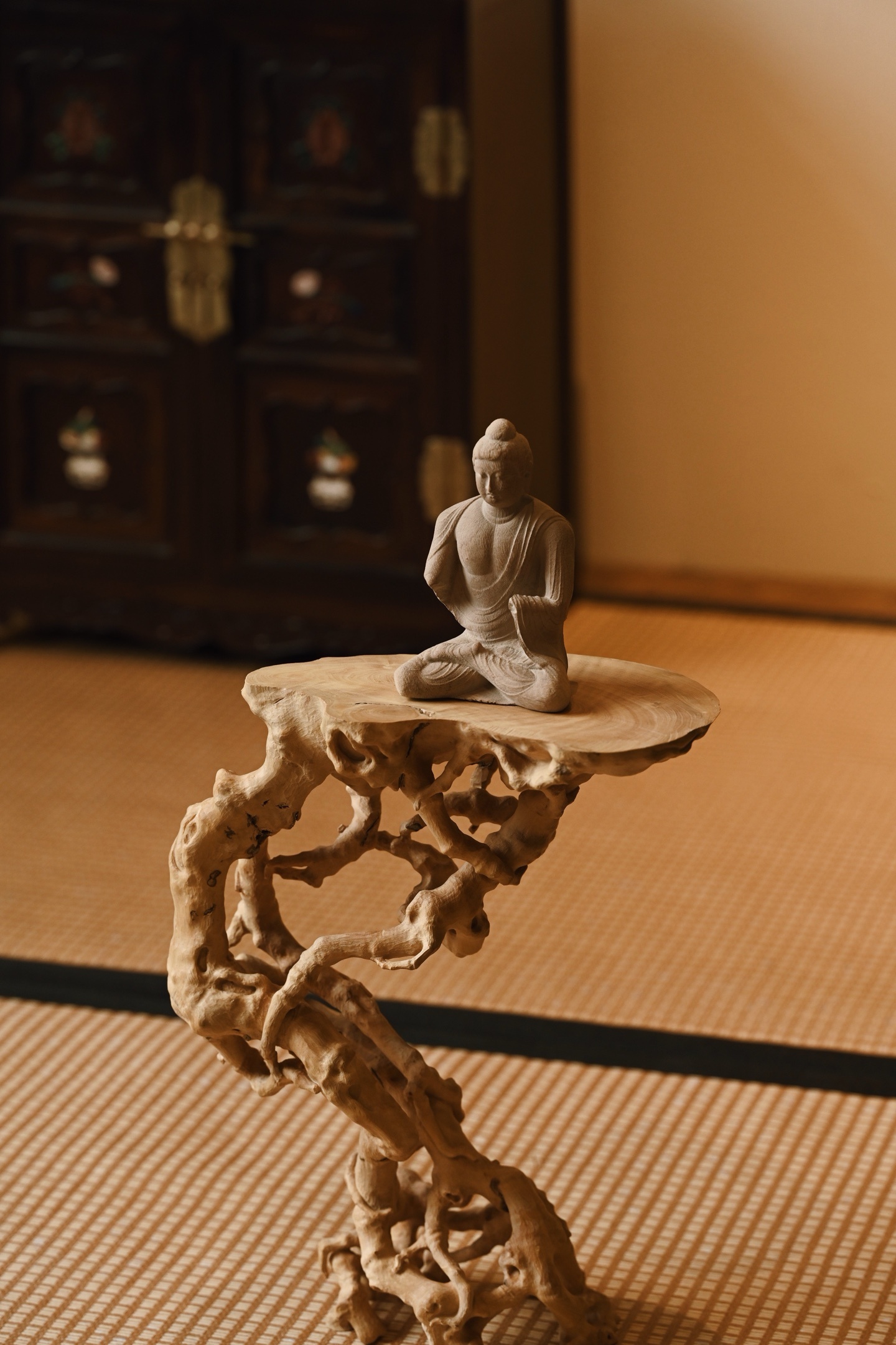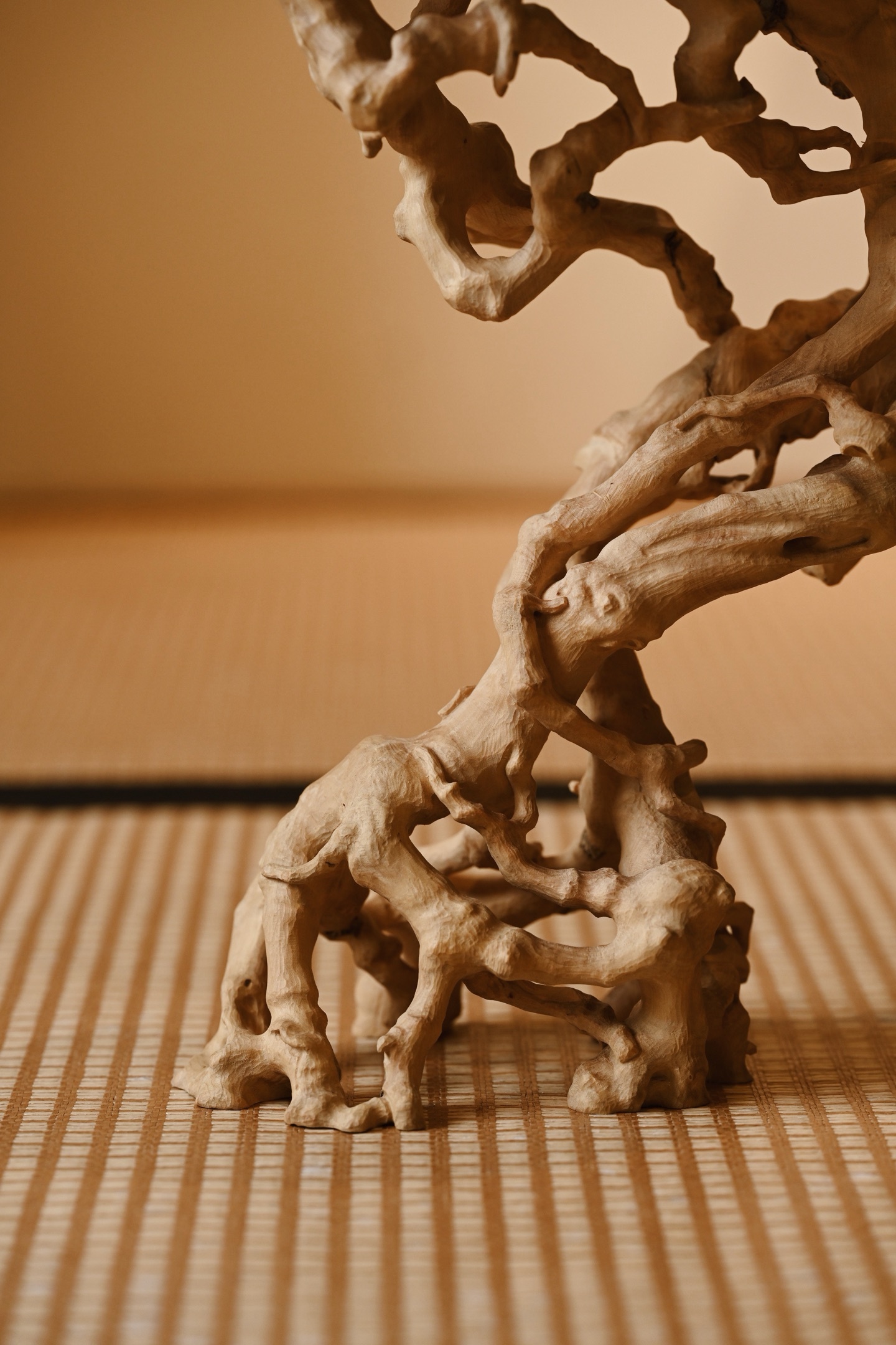 黄杨木 | 盘根 底座整料雕刻,形制古朴,雕刻根须盘旋扭转,透漏有致,整器视之遒