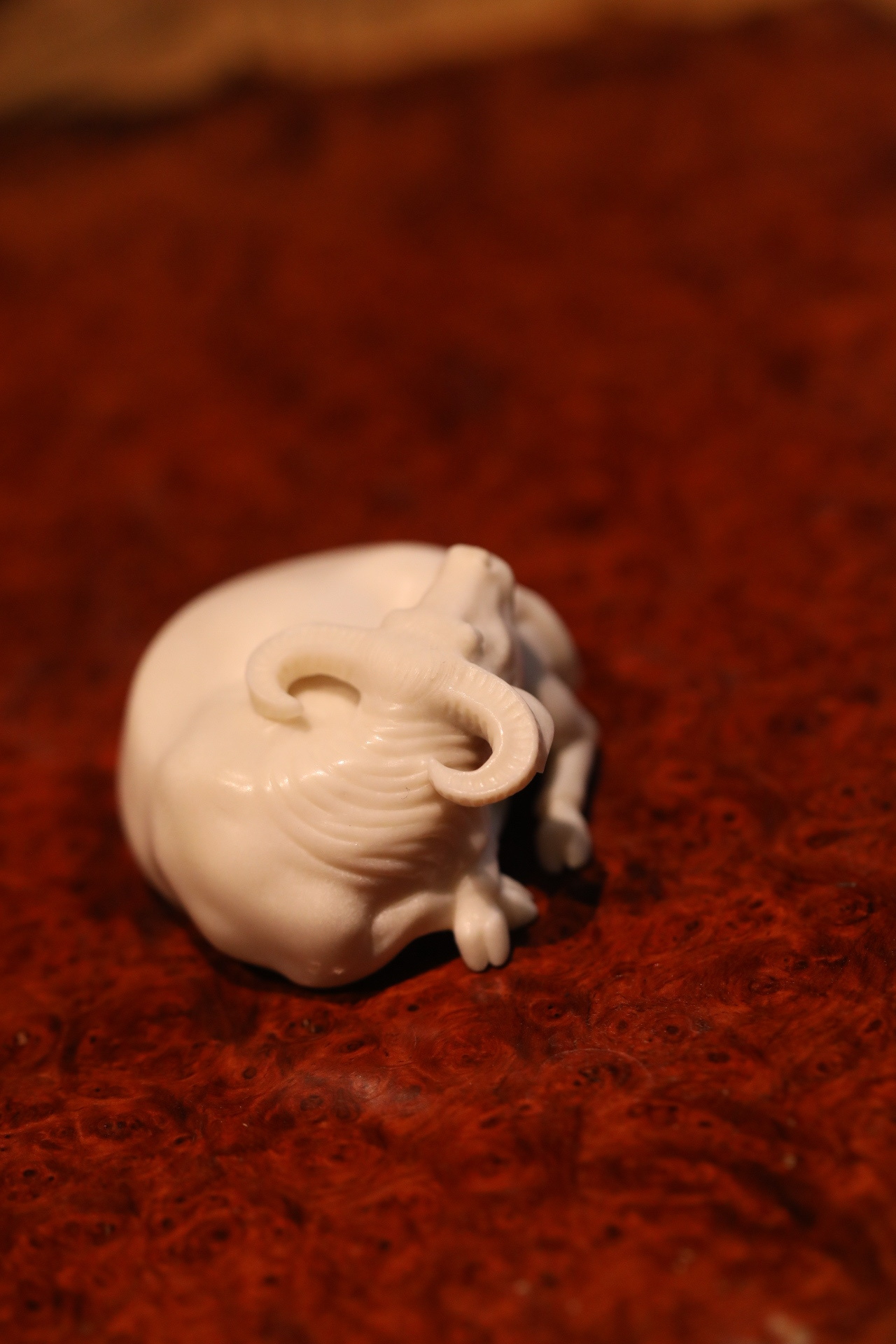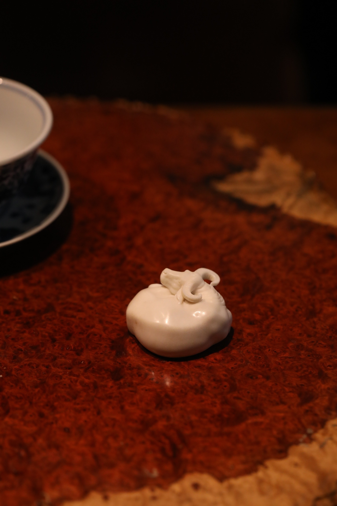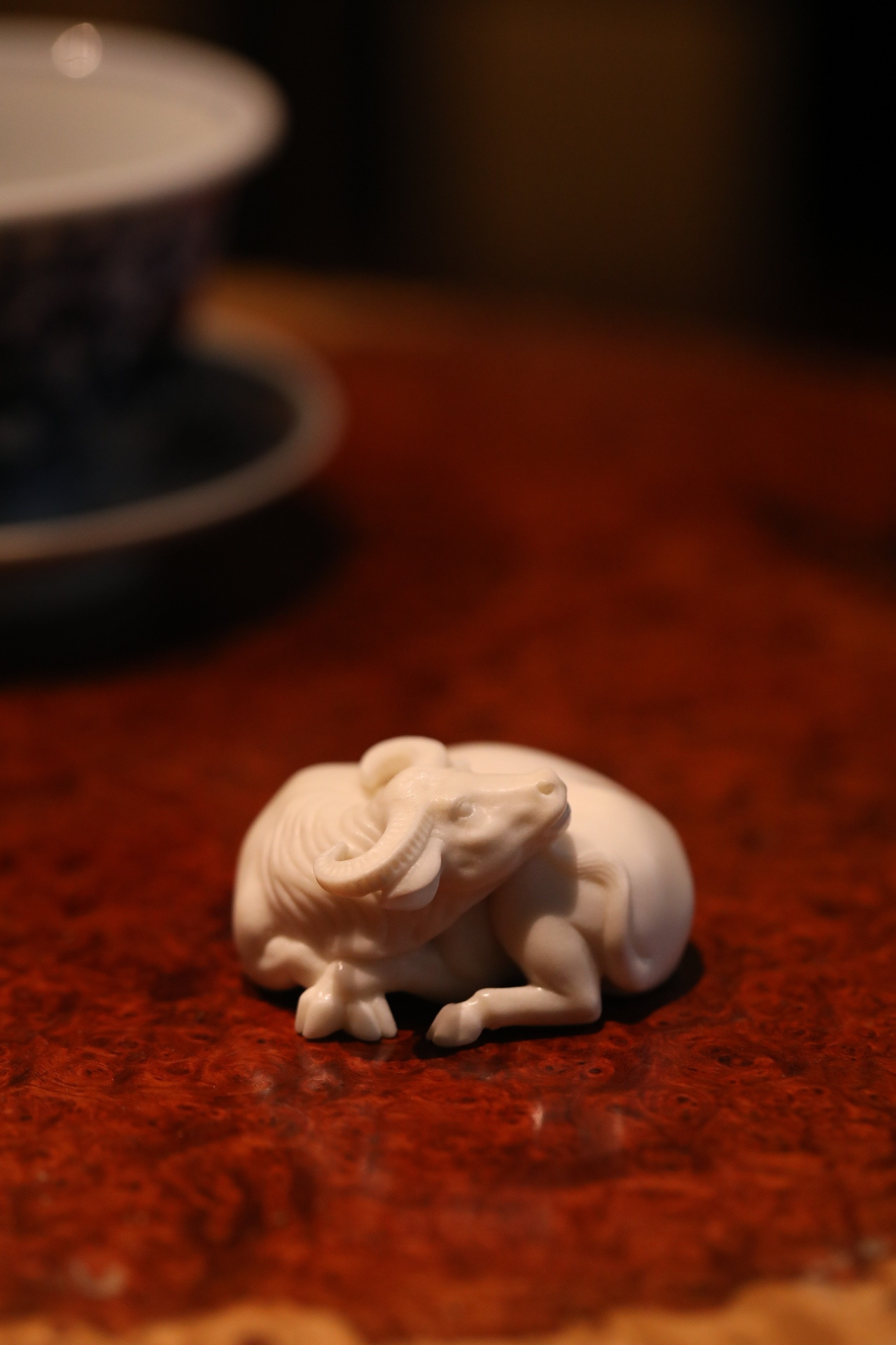 鹿角 | 卧牛 茶宠一段温润鹿角,历经时光打磨,质地清透如凝脂。匠人以圆雕巧思,琢出一只恬然卧牛——它身姿圆融蜷曲,头颅轻昂,目光宁静望向远方,仿佛林泉之间的悠长呼吸都凝驻于此。牛背线条流畅如丘峦起伏,每一处转折皆柔和蕴藉,透出浑然天成的闲适意趣。这不仅是手艺的呈现,更是一隅心灵的田园,在喧嚣世界里卧出一片沉稳安详的天地。长5 宽4 高2.5cm 重50g