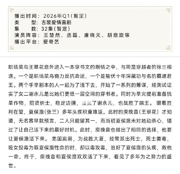 《成何体统》播前招商安排上了,王楚然×丞磊领衔,明年2月爱奇艺见!双穿书+古装轻