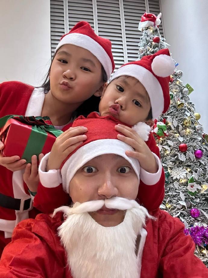 福原爱前夫江宏杰晒出和两个孩子过圣诞的照片,看来孩子们目前跟着爸爸。福原爱很难带