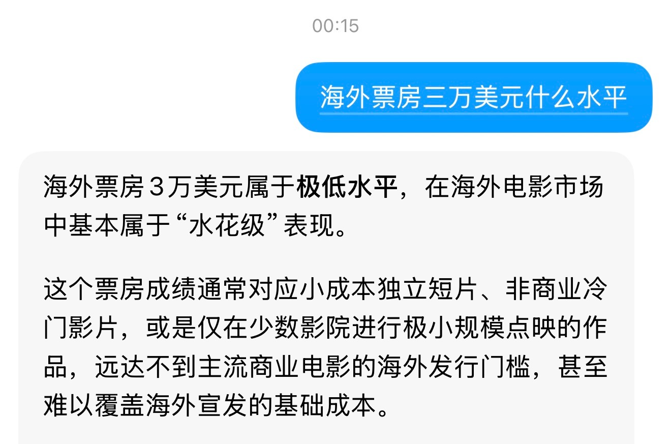 这可以看出徐克还是有海外市场的,某主演海外底盘3万美元