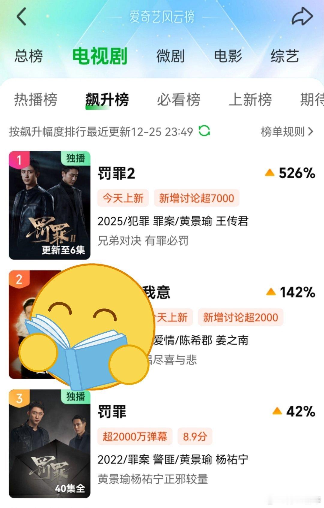 罚罪2开播黄景瑜秦枫黄景瑜罚罪2罚罪2爱奇艺热度破6000 起点755,20分钟