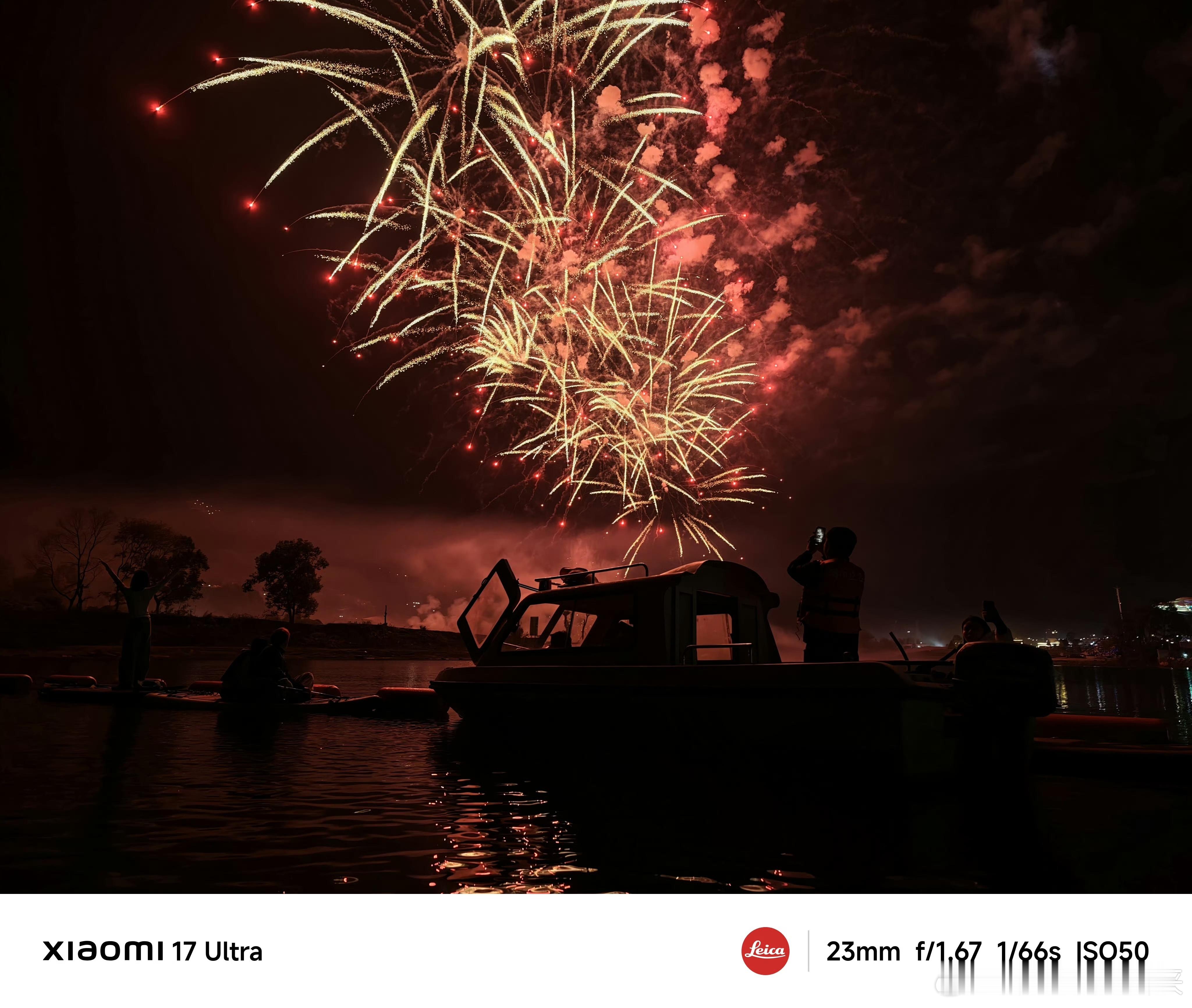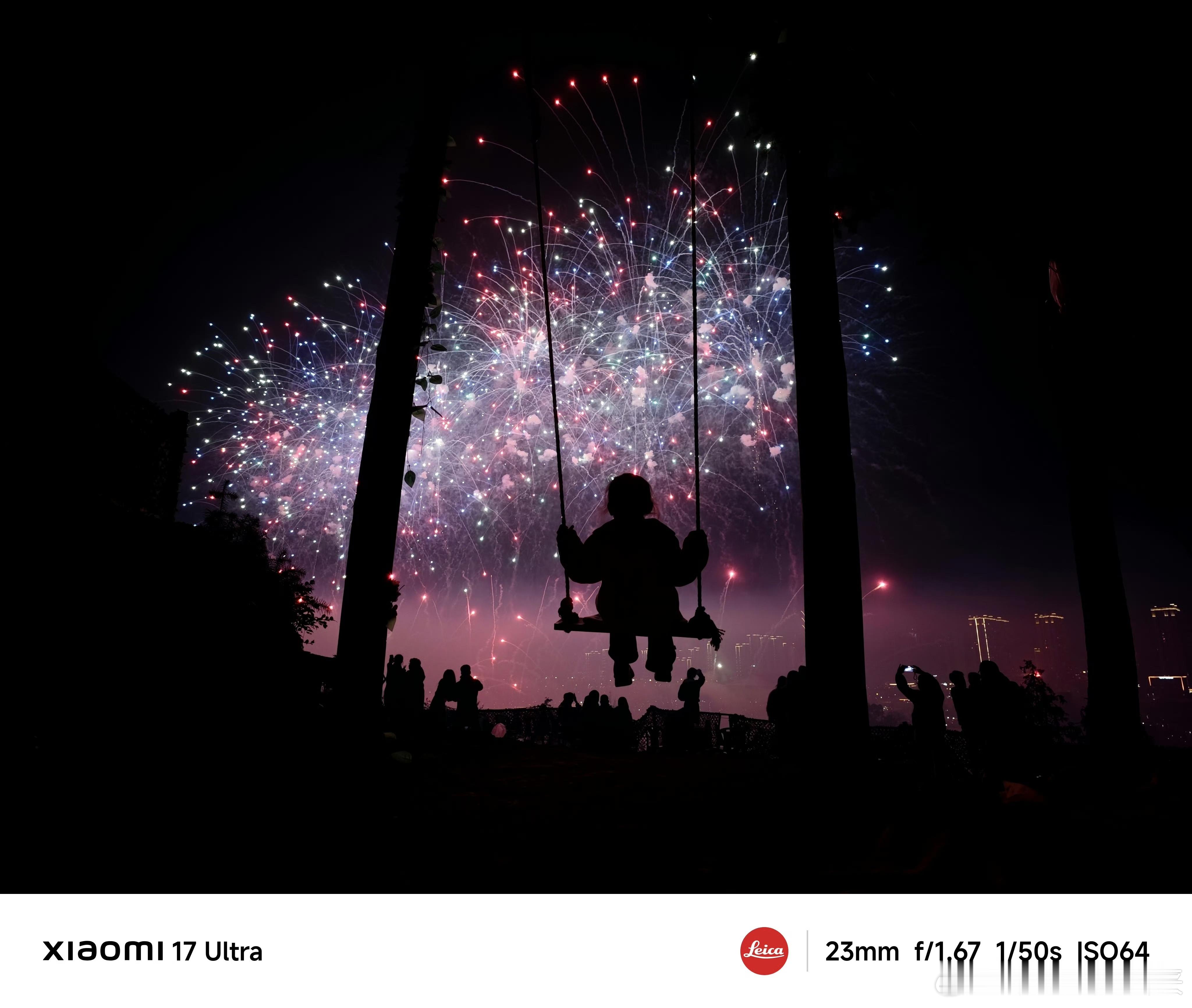 小米17Ultra烟花模式第一张是我之前用苹果拍的大家可以对比一下,说实话过年根本没有拍摄欲望。要么烟花过曝成一团白,要么夜空黑乎乎全是噪点。但小米17 Ultra的烟花模式直接把难度拉到最低,打开相机找到模式一键开拍就行。关键点就在LOFIC的超高动态技术和徕卡1英寸大底,烟花的色彩亮得饱满又不溢,夜空还非常深邃干净,连炸开的细微纹路都看得清清楚楚。而且人景同框也不会翻车,人物轮廓很清晰,烟花当背景氛围感直接拉满,完全不用后期修图。过年想拍烟花发朋友圈的,这模式闭眼冲,新手也能轻轻松松拍出大片感!小米发布会
